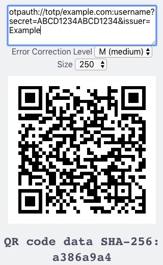 otpauth://totp/example.com:username?secret=ABCD1234ABCD1234&issuer=Example