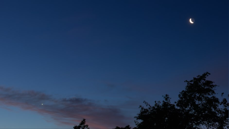 Before sunrise on Friday June 24th, 2022, I took some photos of the planetary alignment. From left to right, Venus, the Moon, Mars, Jupiter, and Saturn were visible. The Moon was to the East, and Saturn was all the way over to the South so I couldn't get them all in the same image. I didn't have a clear enough view of the horizon to see Mercury, but it was there ahead of Venus in the procession.