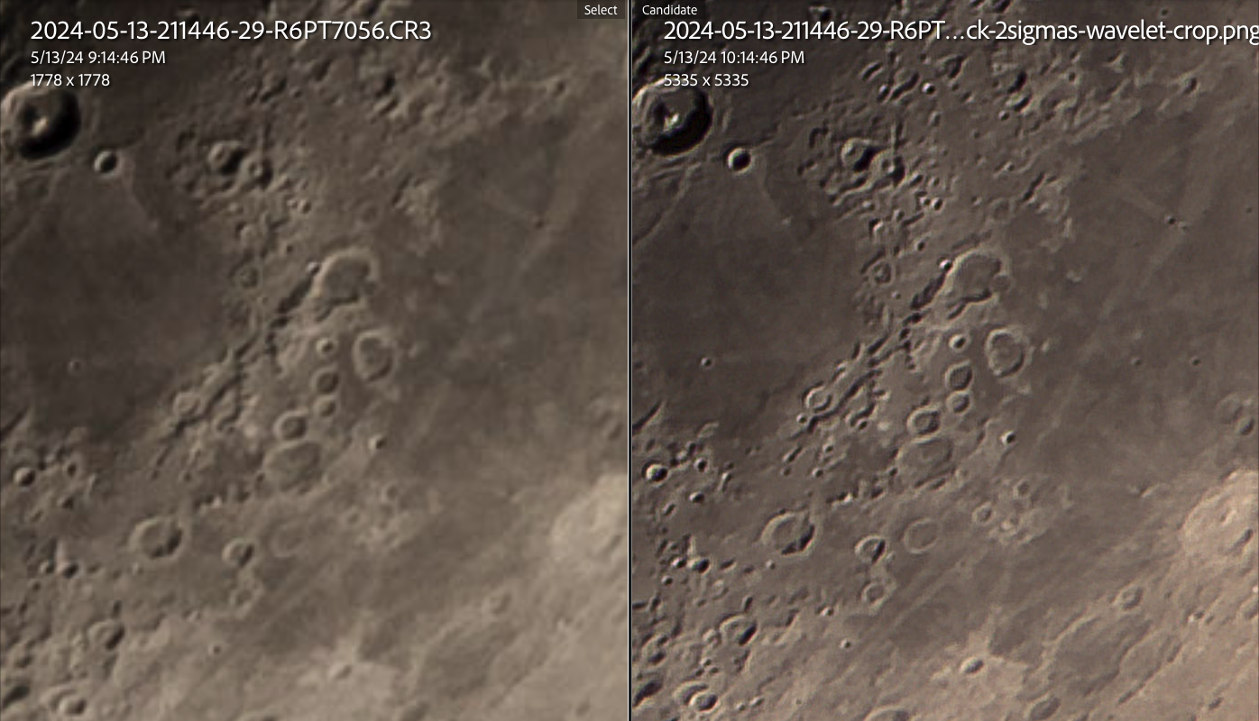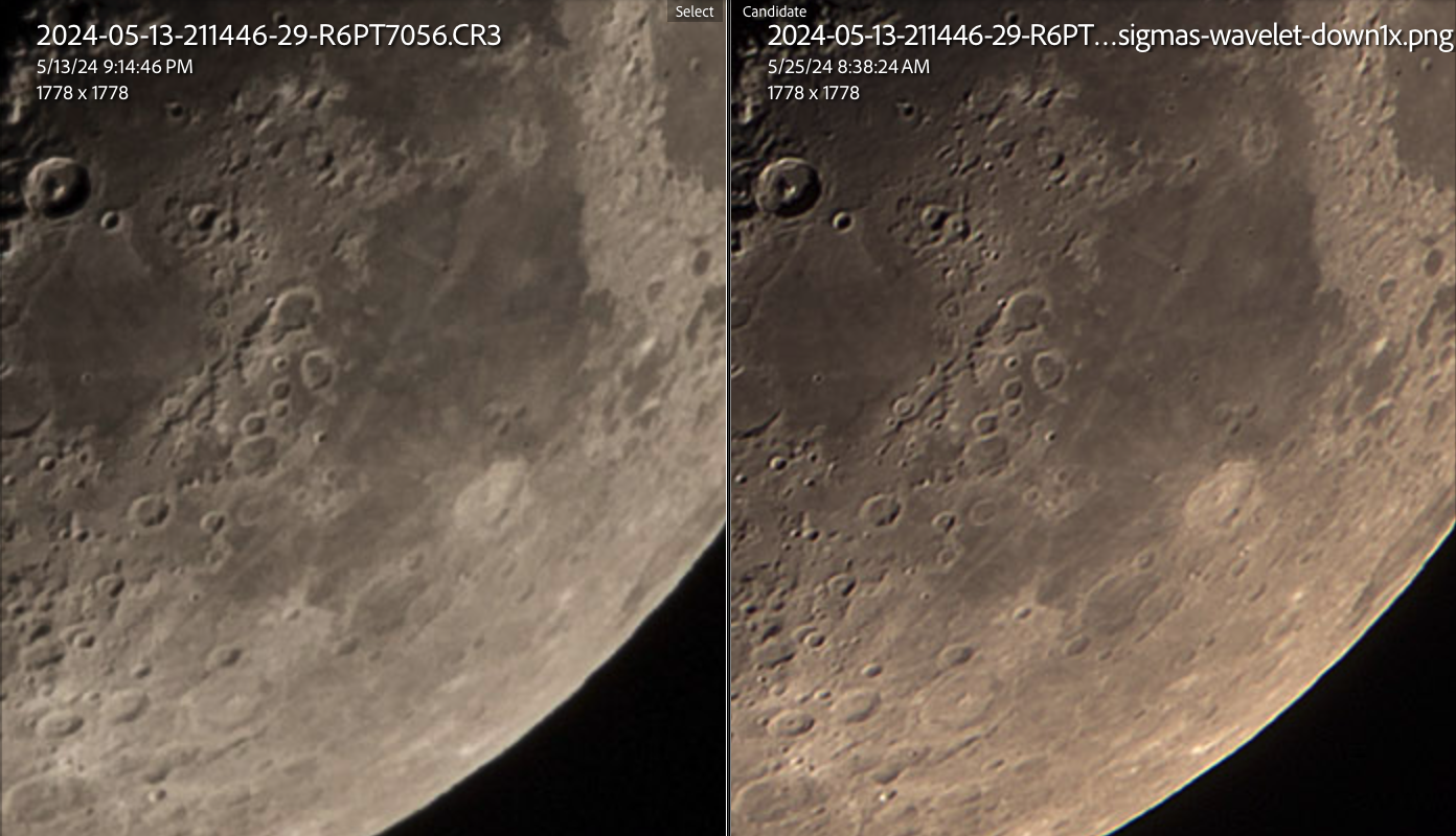 In summary, this was a great little project to exercise my Python code for aligning and stacking, and for testing AstroSurface for wavelet sharpening.