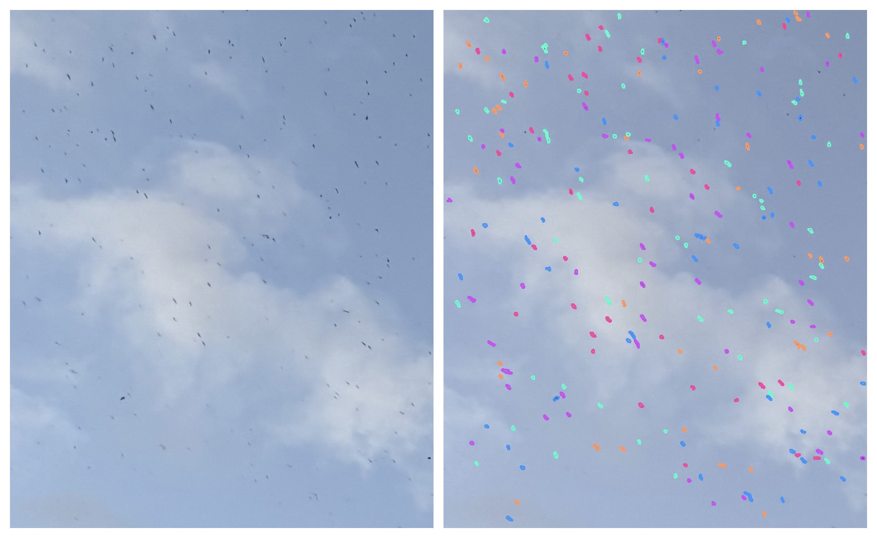 I could have roughly counted the birds in the photo by 100s, but what fun is that when I can write some code and get a much more accurate number?