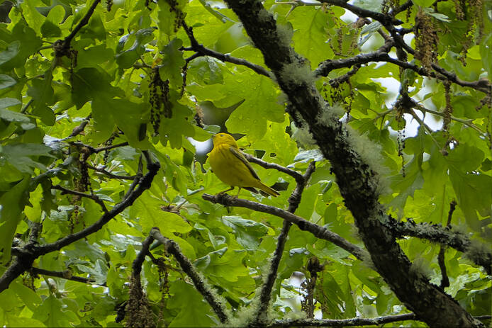 I got three new yard birds: Western Wood-Pewee, and Pacific-slope Flycatcher, and Yellow Warbler. I don't think I'll ever get three new yard birds in the same gallery again!