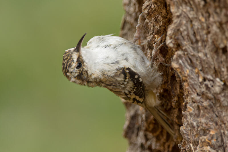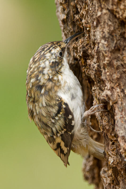 On a different day, I noticed a Brown Creeper looking foraging on some trees in our yard so I waited and got a decent photo opportunity on a tree close to our deck. Most of the shots were terribly out of focus but I got one shot I'm happy with. Dealing with the very bright breast feathers of the Brown Creeper seems much easier in Lightroom than with darktable and its "filmic rgb" module.
