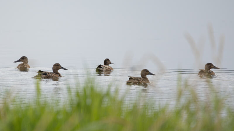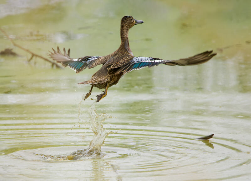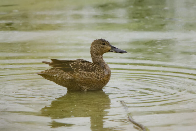 Blue-winged/Cinnamon TealThe top of the duck's head was right at the edge of the frame here. I was able to use Photoshop's "content aware fill" to expand and fill in a couple hundred extra pixels at the top of the image, and I went around with the cloning brush to make it less obviously artificial.