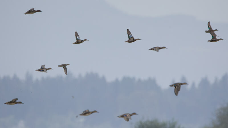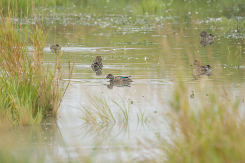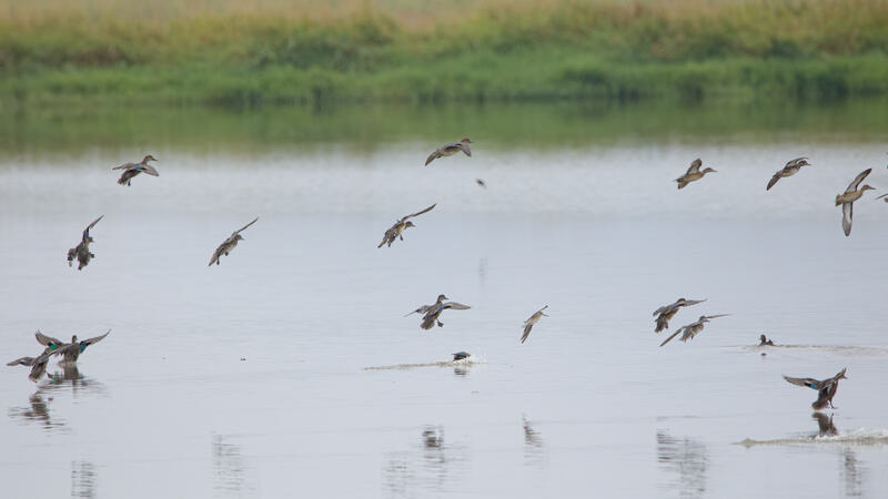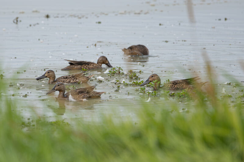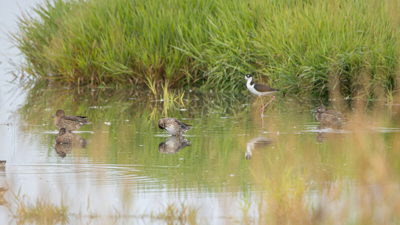 For the last birding outing here, I went down to the wildlife preserve aiming to get a Pectoral Sandpiper, and was successful! It was a new lifer for me. There was one very actively feeding on a small patch of mud. It was a good deal larger than the nearby Least and Western Sandpipers. I also happened to get a nice shot of a Black-throated Gray Warbler. Many of the ducks were Green-winged Teals, though I saw a few small groups of Blue-winged or Cinnamon teals as well. I followed some American Goldfinches who were feeding on plant seeds, and got some shots I'm happy with. It looked like they had an abundance of food.