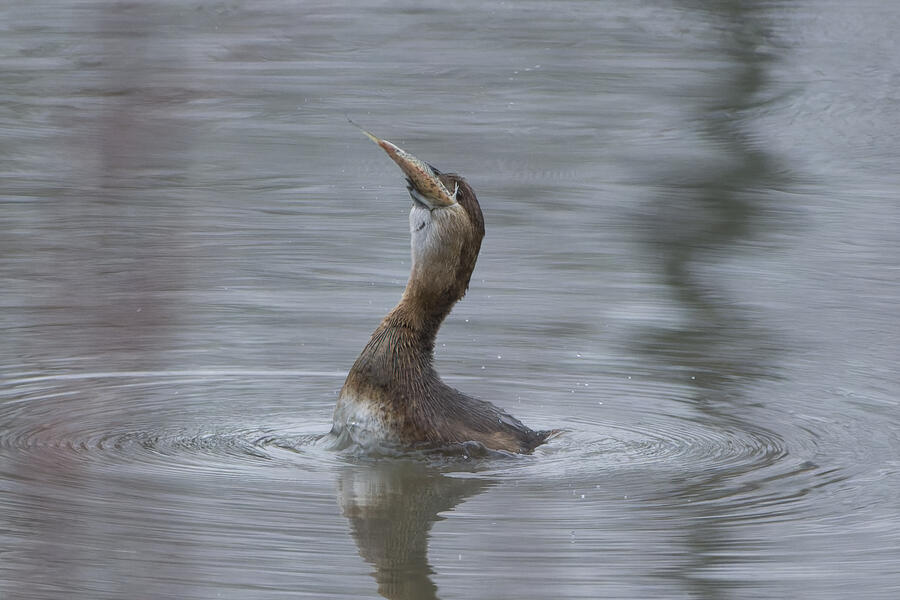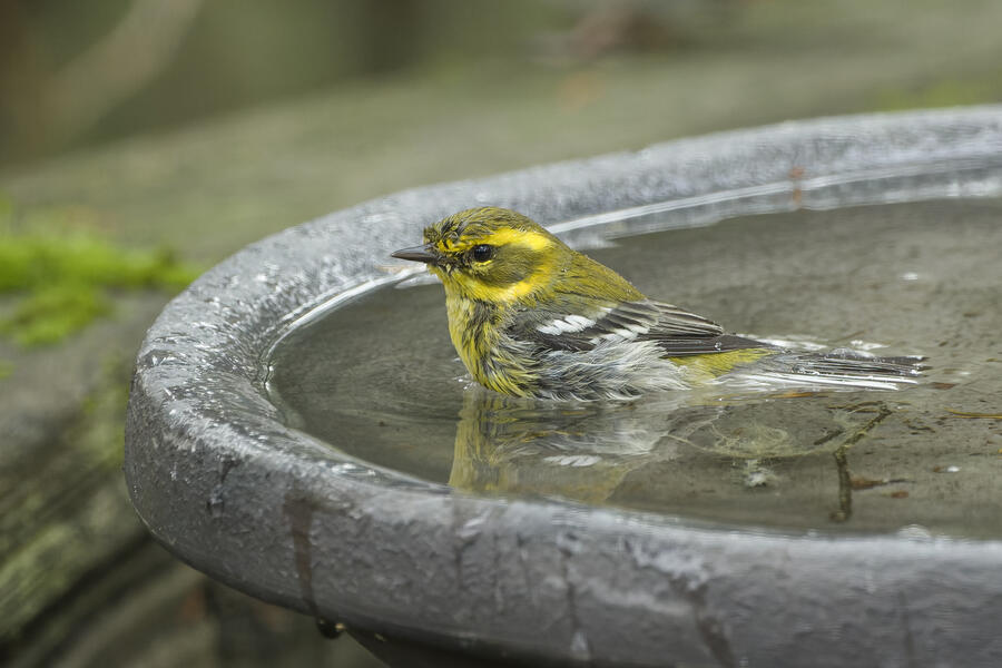 I also got some fun shots of a Townsend's Warbler using the birdbath, and a Pied-billed Grebe trying to swallow a relatively large fish.