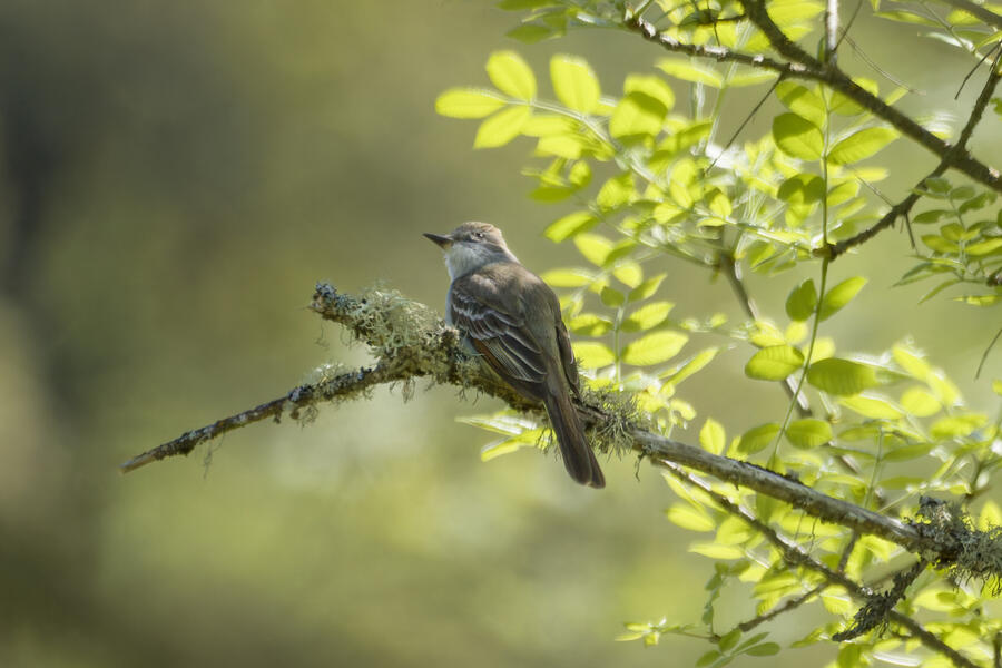 I didn't see much else of note on the next 3 miles of hiking. As I approached the parking lot once again, I saw some small birds on another path. There was a trickle of water in a small ditch along the path, so I figured I may run into some different species there. I walked for a while and was about to turn around when my Merlin app alerted me to the call of another lifer: Ash-throated Flycatcher. This is a rare sighting in the area, but other birders had reported (and photographed) one recently. I didn't go out looking for it but stumbled upon it! I didn't get a good look at it. It was initially perched low, but behind some trees. It then flew to a couple higher perches before flying out of sight. I managed to get a couple photos to help ID it. I'm really glad I decided to just keep going!
