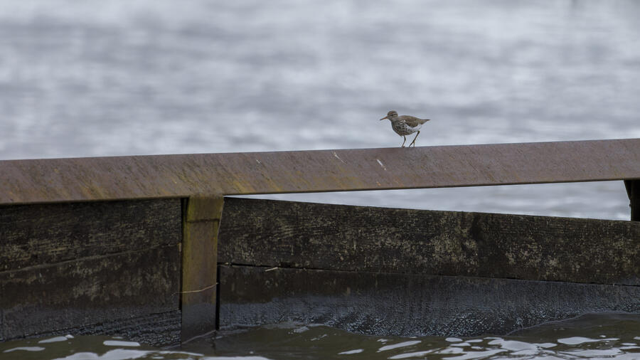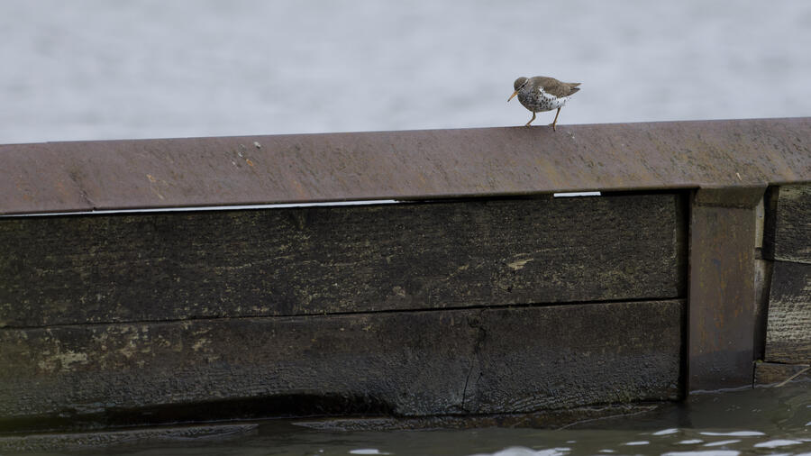I had a pleasant morning walk at a local lake. I didn't see anything terribly noteworthy. The water was quite high but there were very few water fowl out and about; just a few far-off grebes. I did however really enjoy photographing a Spotted Sandpiper. I photographed one on March 1st in winter plumage, and here 12 weeks later this one was in full breeding plumage.