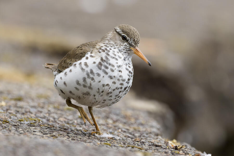 Spotted SandpiperFor these close-up shots, I tried laying on the ground and propping myself up on my elbows. It worked great and it was fun to shoot at eye level with the bird.