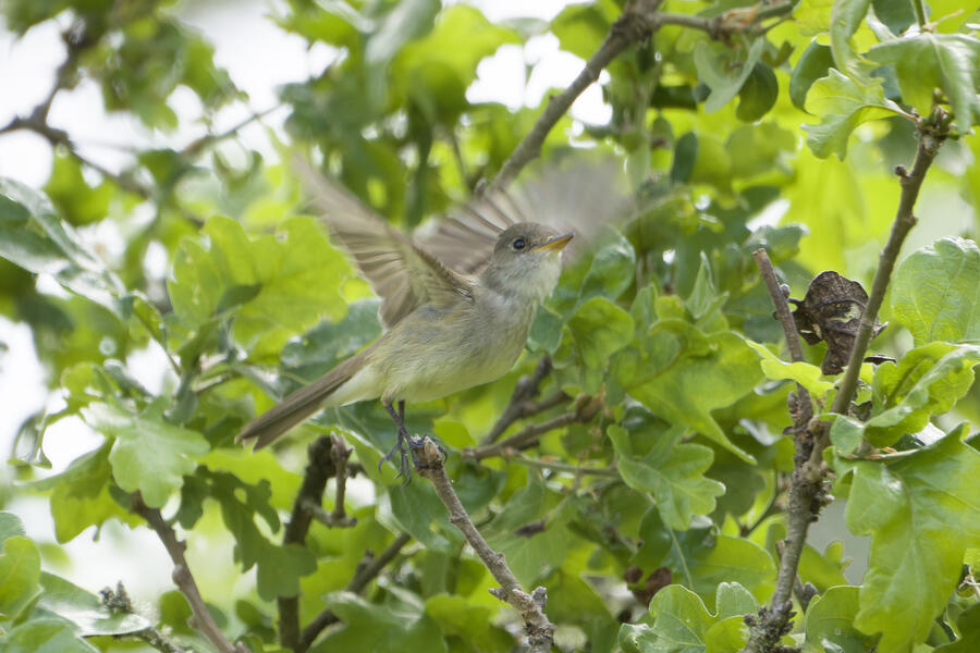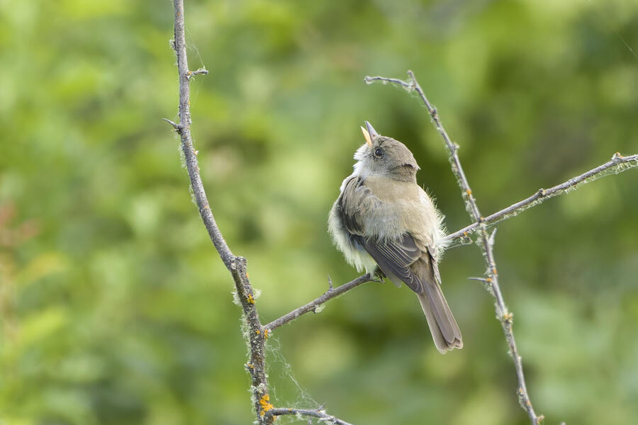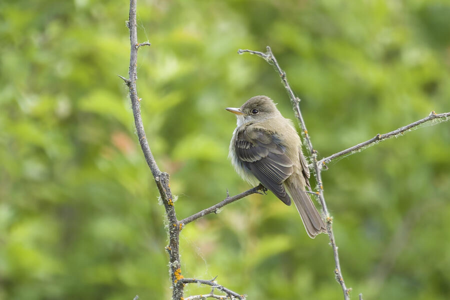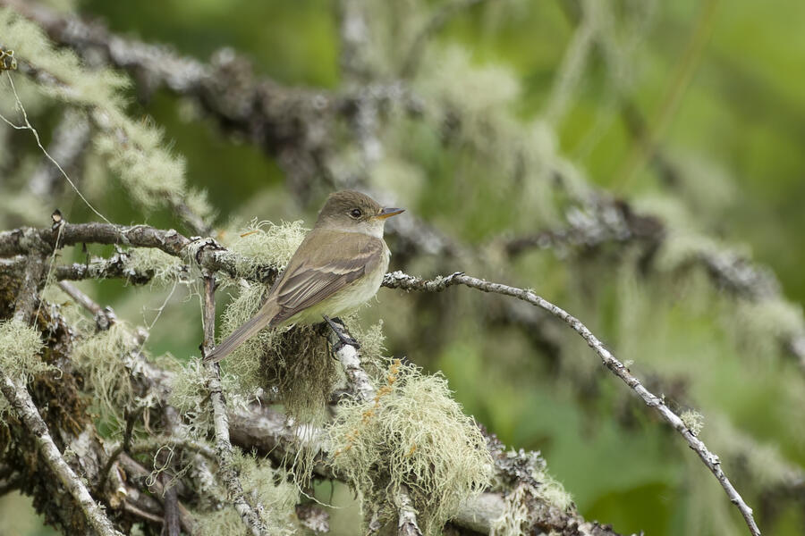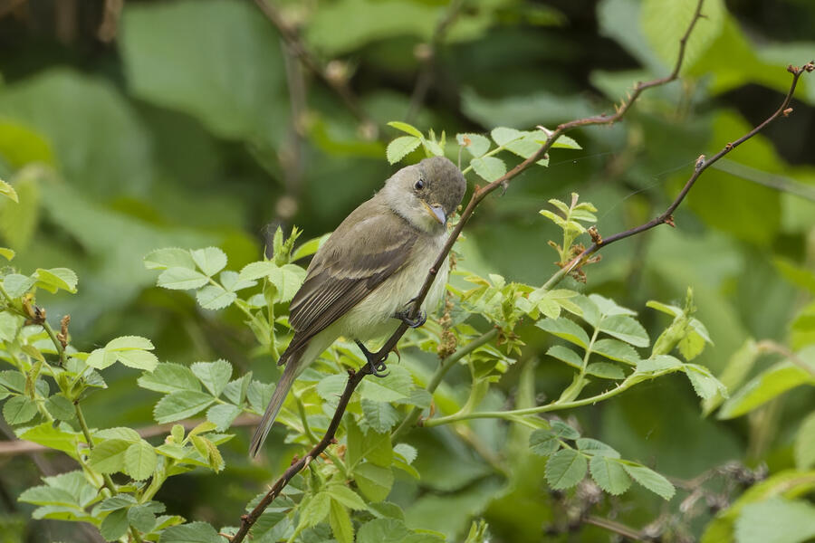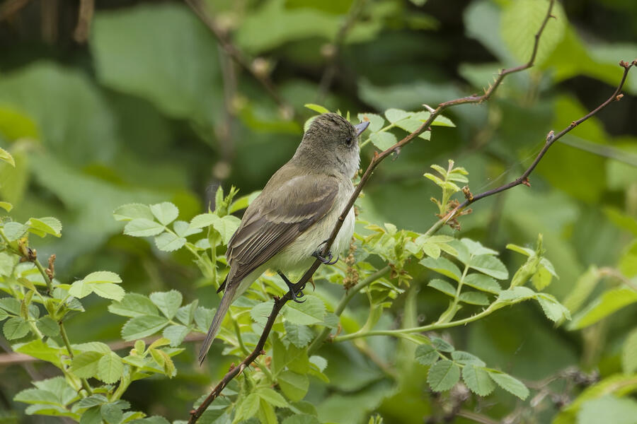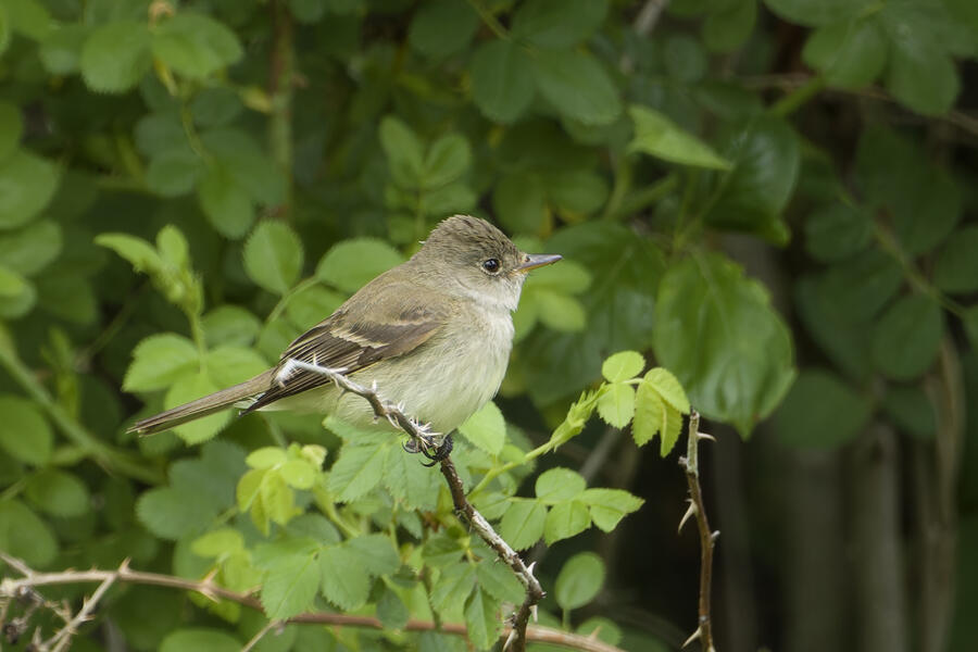 I saw that Willow Flycatcher had been sighted recently in my county, but I decided to instead try once more for Blue-gray Gnatcatcher (and it would be cool to see the Yellow-breasted Chat again, too). When I was approaching the last bit of trail heading toward the car, the Merlin Sound ID feature identified a Willow Flycatcher sound. I waited there for a few minutes and didn't hear it again, so I figured the bird may have been nearby on a neighboring trail I hadn't taken yet in my previous two visits to this location. As I started walking that trail, Merlin heard the bird again. I was getting closer! I used the app to play the Willow Flycatcher song (just quietly, to myself) so I would recognize it. Luckily the bird was singing and moving around, and I found it relatively easily after a short hunt just a few hundred feet down that next trail. I was able to snap a few photos and followed the bird around for a while. It never gave me a terrific photo opportunity but it was fun to hunt the lifer down! This flycatcher didn't look different from the other species I've seen recently, but that's the hallmark of flycatchers: the song is how they're best idenfitied. I am now 3-for-3 in my visits to this location for seeing new lifers!
