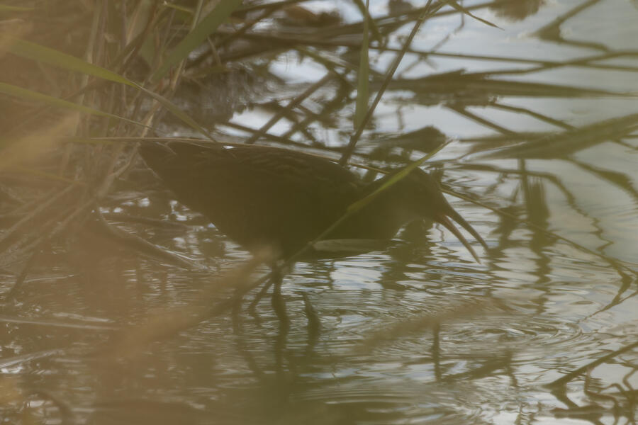 On this outing I caught my first-ever glimpse of a Virginia Rail when one flew from one area of reeds to another. I only saw it for about a second but it was entirely dark — a juvenile. A little while later, while standing still near an isolated patch of water, I saw another couple of rails. I had to photograph them through some grasses and reeds, using manual focusing, but I managed to get a few photos! Finally!