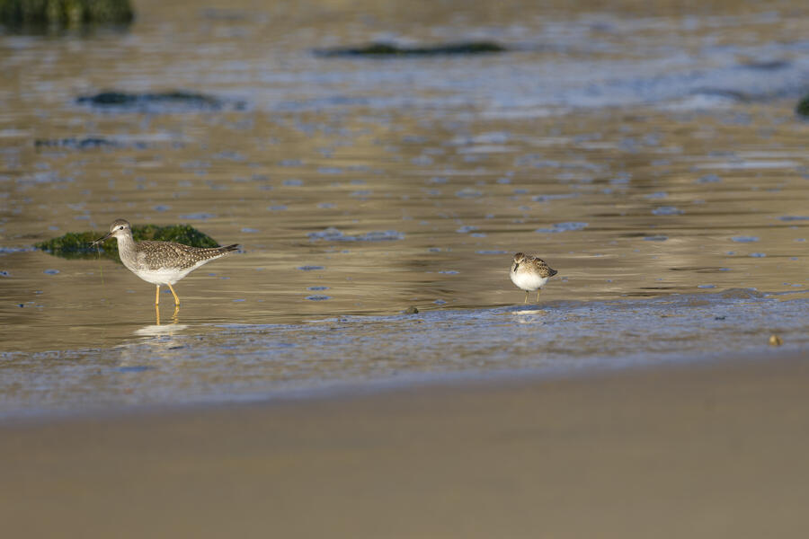 Least Sandpiper, Greater YellowlegsI expended this image with the Photoshop Beta "generative fill" feature, and it worked great.