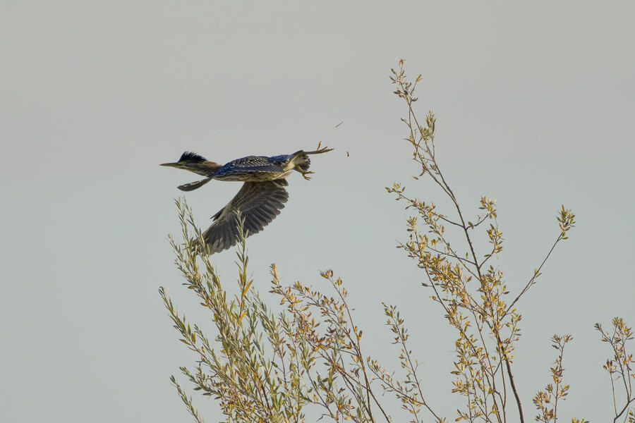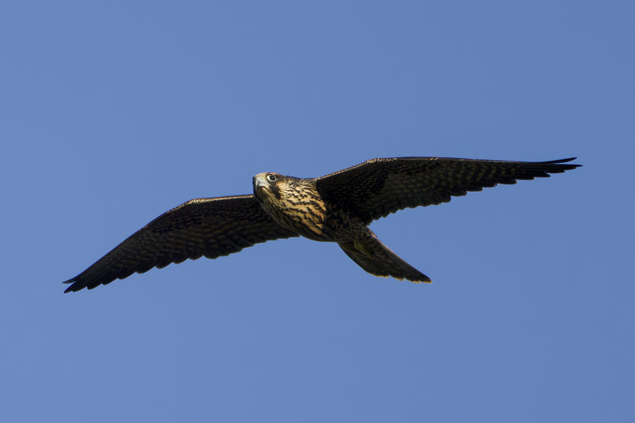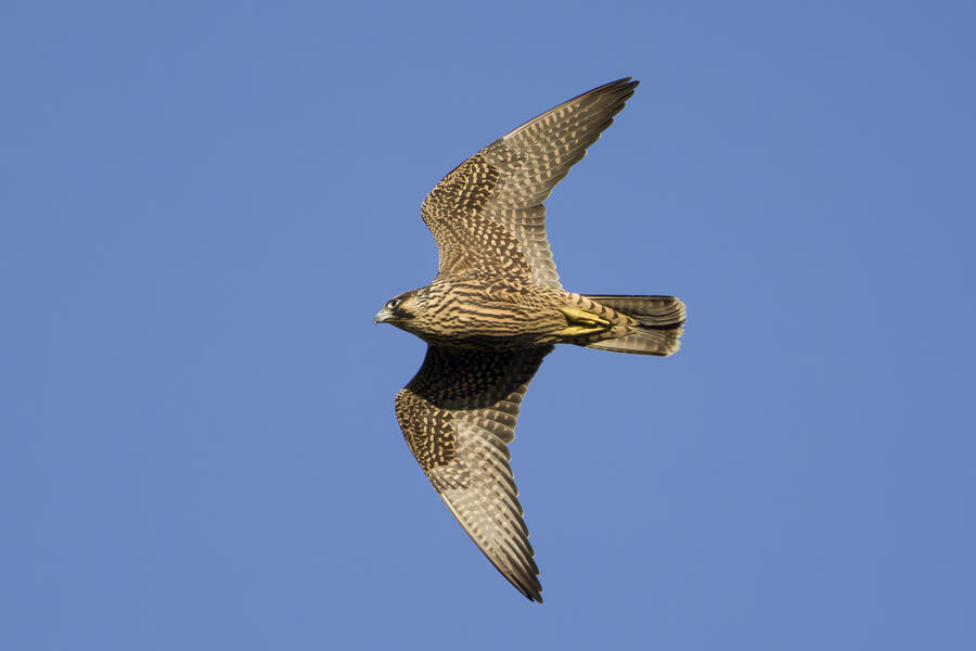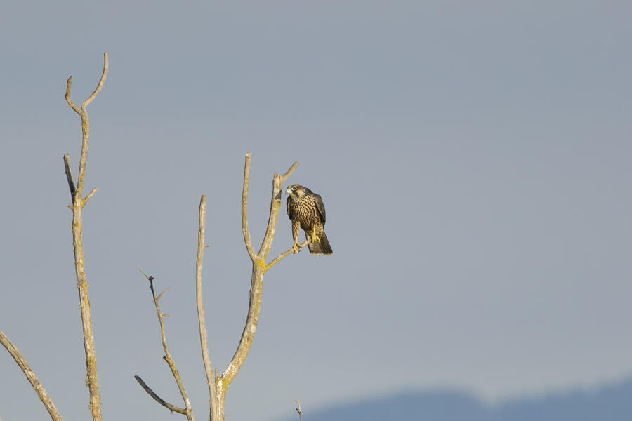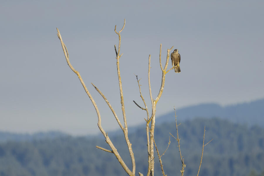 On this recent birding walk I photographed a few unusual sights. I watched a Green Heron land in a small tree, and take off flying again soon afterward. I also saw a pair of Peregrine Falcons flying around. They had relatively quick wing beats, and pointy wings, so I knew they were somewhat unusual. At least one of them, which I photographed, was a juvenile. I also took some bad photos of an immature Pied-billed Grebe actually taking flight. I don't think I've ever seen a grebe flying before!