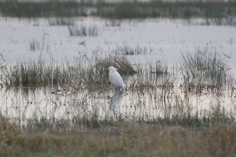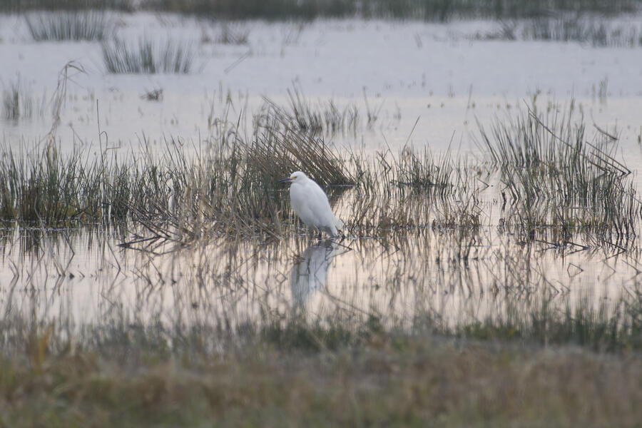 I also made a few trips out to look for more rare birds, and I was successful on one outing: I saw my lifer Snowy Egret! It was another gray overcast day, and down at the wetlands there was lots of standing water everywhere reflecting the nearly white sky. So it was nearly impossible to see the little white egret. Thanks to some folks who had already found it, I was able to get some photos and a look through my binoculars. The egrets and herons in the area are usually pretty flightly, so I didn't want to get very close to it, but it was still really cool to see such a rare visitor.