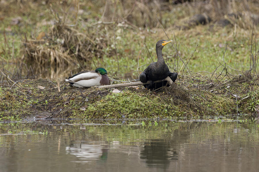 I enjoyed a quiet walk at some local ponds. There weren't any exotic birds, but I did get some nice shots of a Hermit Thrush. Another highlight was some Double-crested Cormorants perching in unusual places.