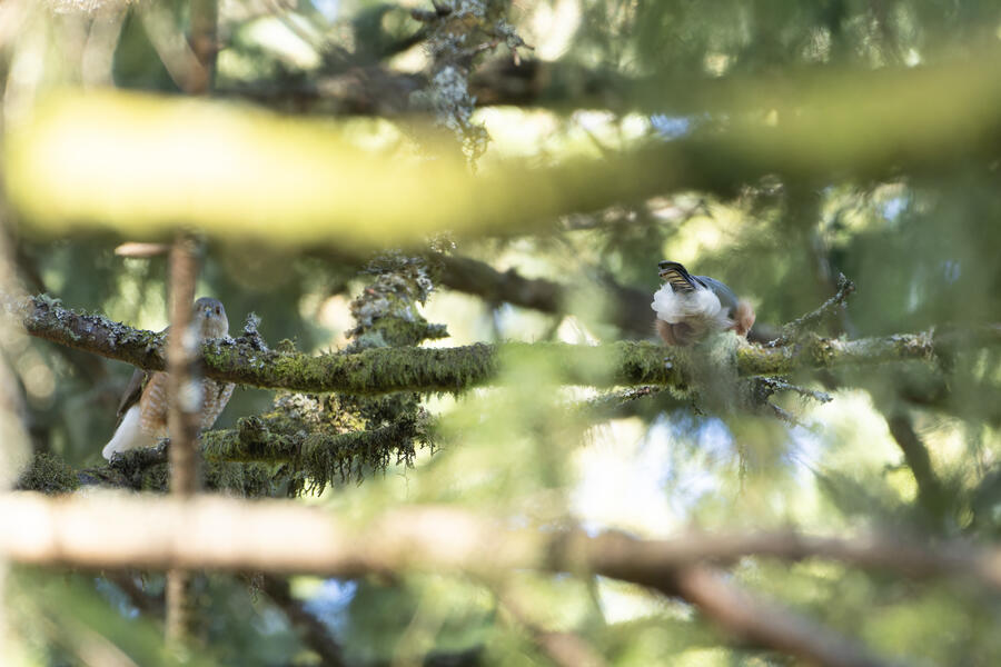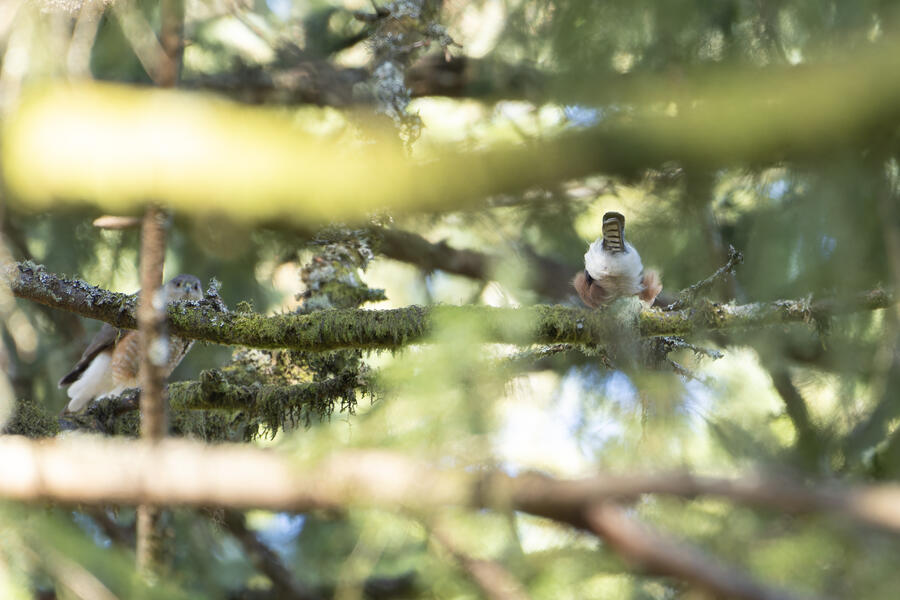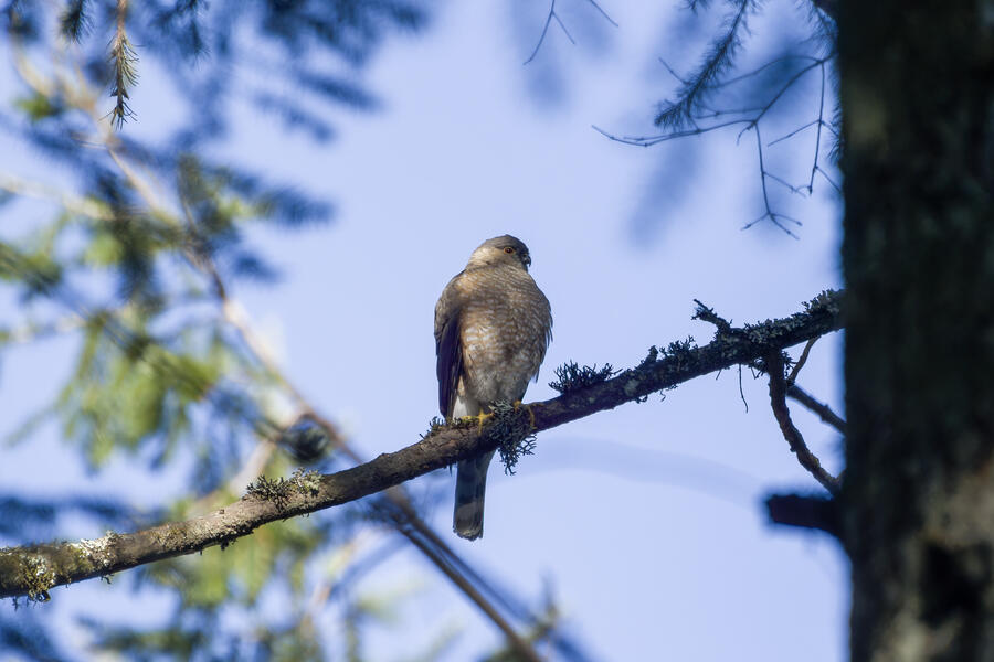 I watched a Pacific Wren building a nest among the upturned roots of a fallen tree. This is apparently a common practice for some populations of PNW Pacific Wrens. It was a quiet walk in the woods otherwise, with another highlight being a pair of Sharp-shinned Hawks.