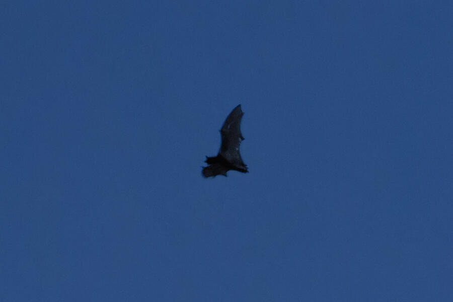 At dusk, I tried to photograph the bats I've seeb flying above our house. I had to use manual focus and managed to get some decent shots. There was almost no light, and these photos have been greatly enhanced by DxO PureRAW. Still fun to try to get a picture of these guys! I think this is a Little Brown Myotis, because they were flying erratically. There were at least three of them that I saw.
