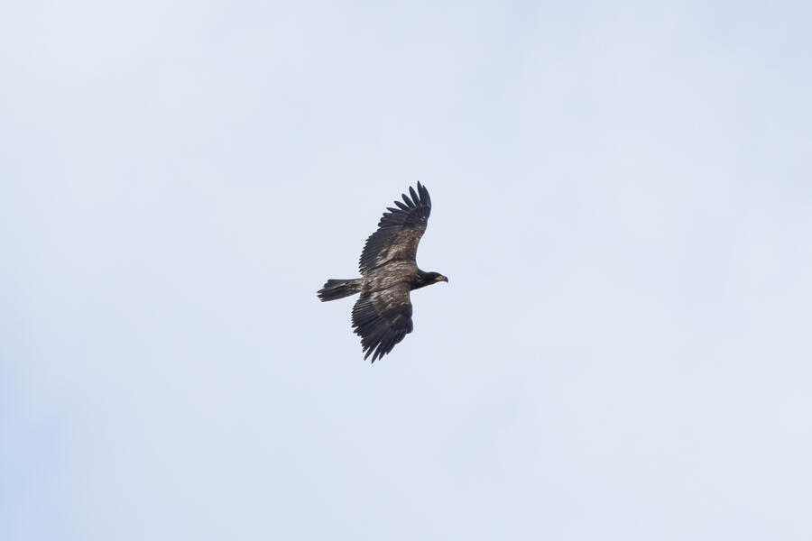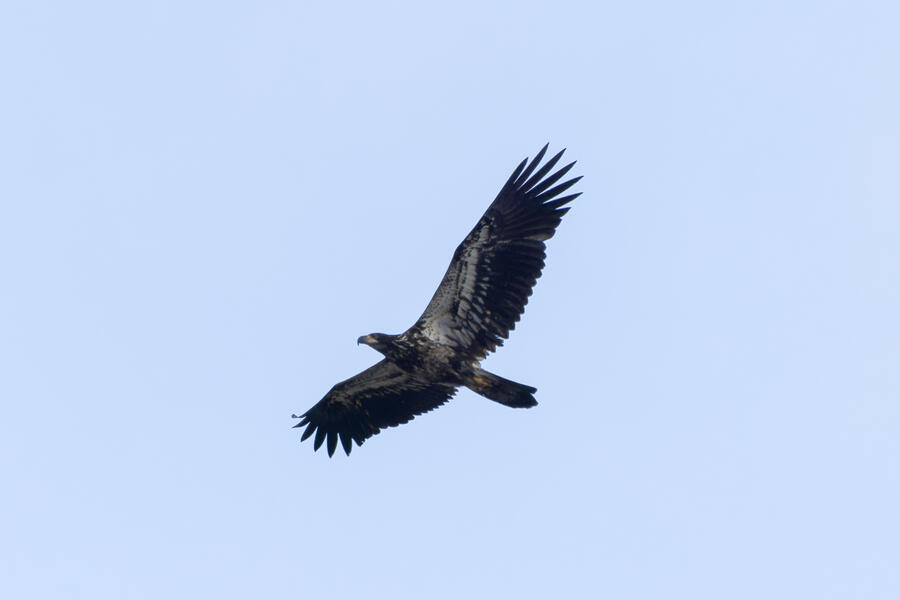 Bald EagleThere were strong winds on this day down at the wetlands, and this young Bald Eagle was soaring in circles above. At one point it got pretty low and slowly floated directly above my head. I had to shoot straight up to get this shot!
