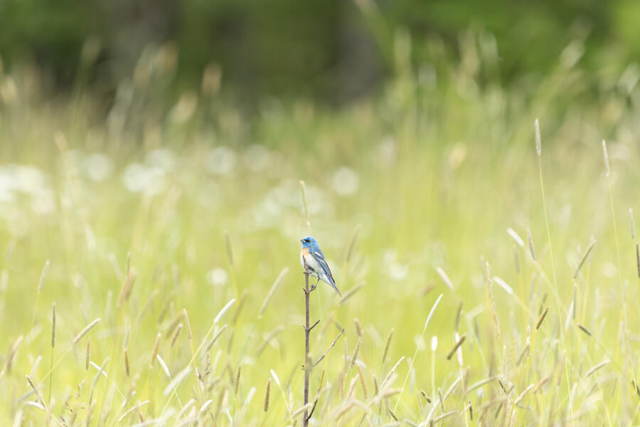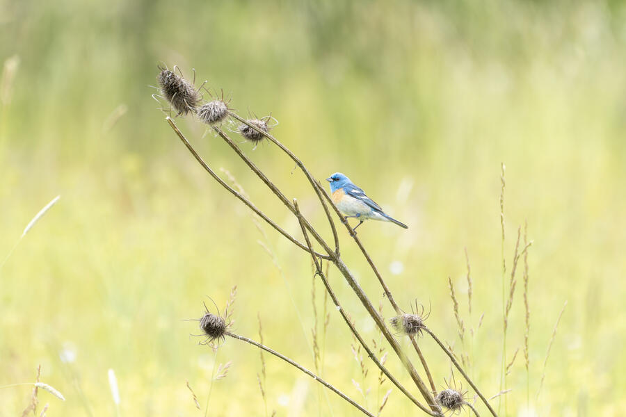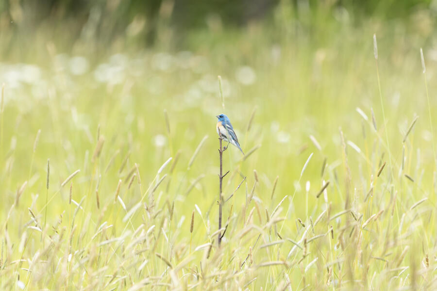 Lazuli BuntingThis is one shot that very nearly worked, but there is a tall distracting grass stem in the foreground.