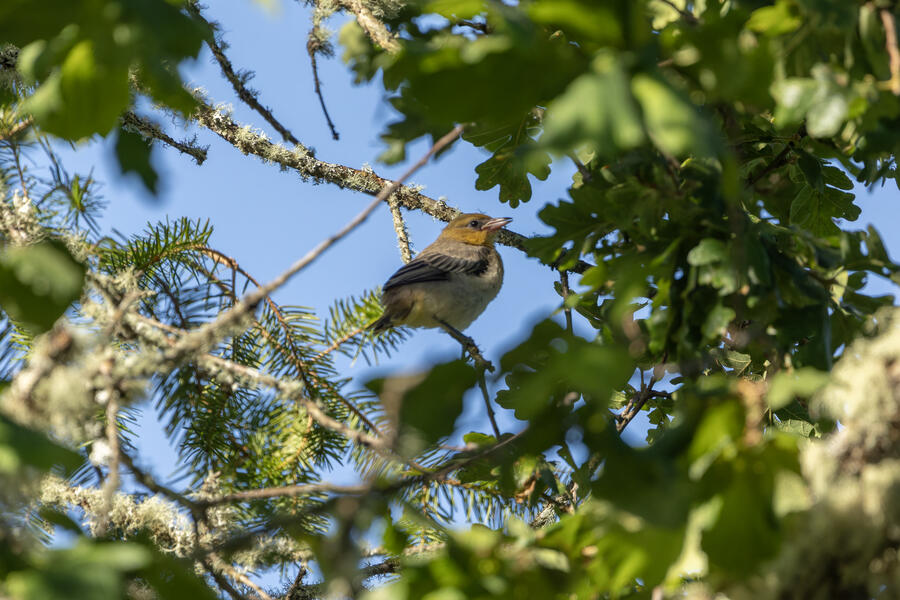 A new yard bird starts off this gallery: Common Yellowthroat. This one was making a familiar low buzzing noise, so I went and grabbed my camera. It appeared to be a young one, who perhaps somehow ended up in the wrong place! I've seen plenty of these birds around here but never in a residential area. This one stayed hidden pretty well in our garden, and was only briefly visible when it moved out from under one plant to another. After waiting for a few minutes it finally made a brief appearance before flying away. It did return to the yard a short while later. A pretty cool yard bird!