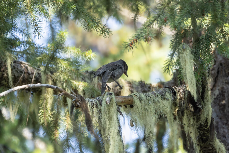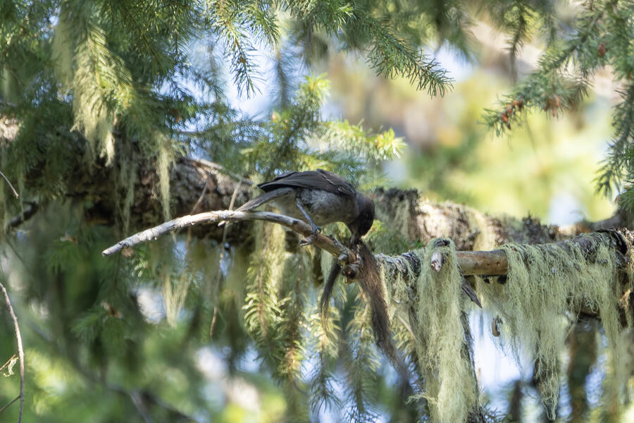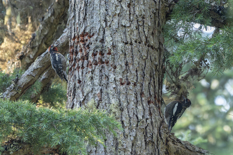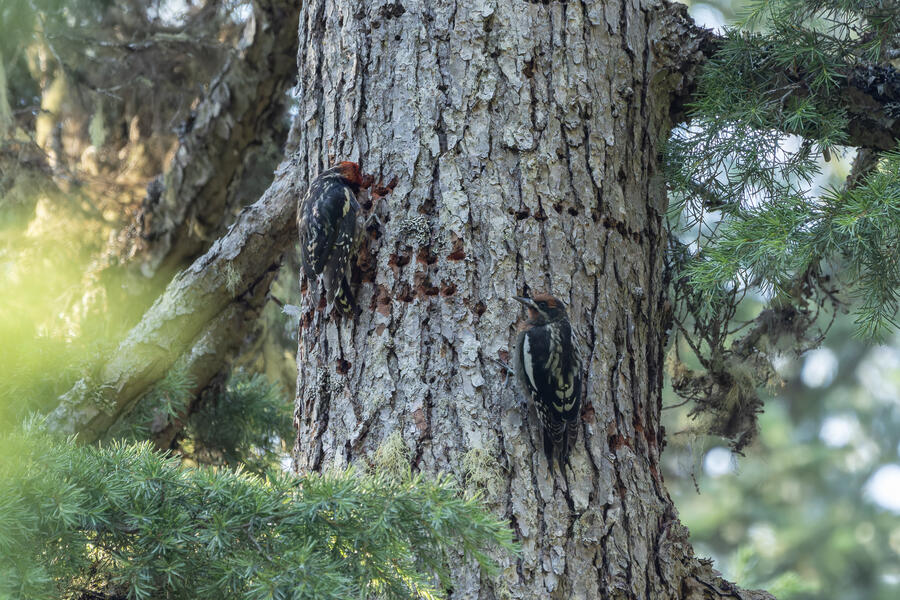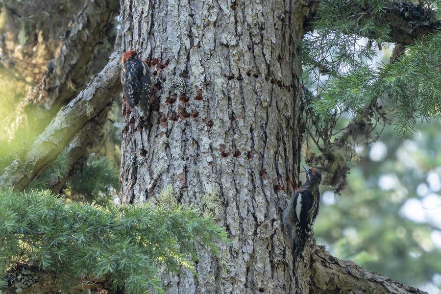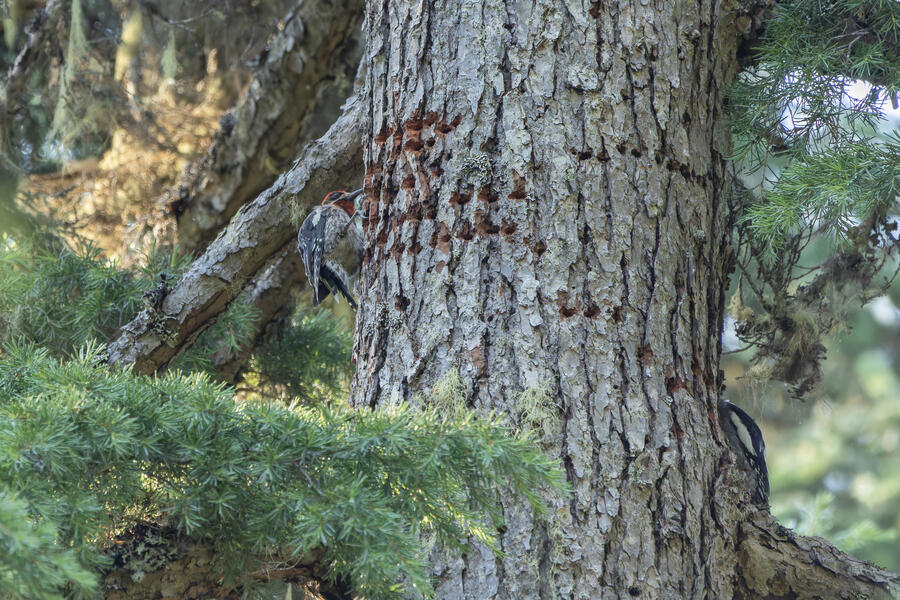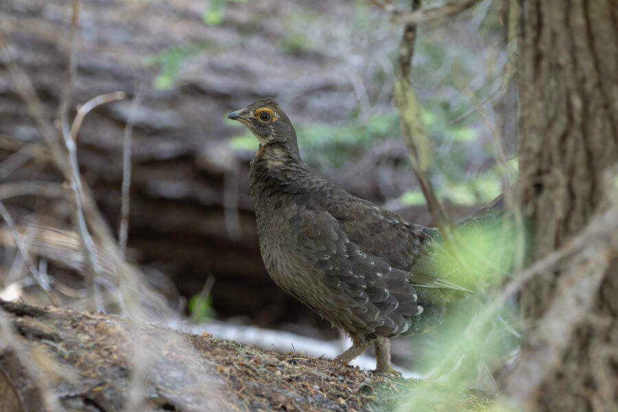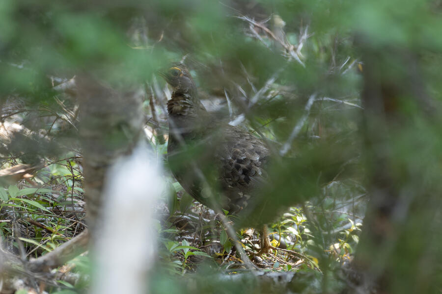 On a nice quiet walk up at elevation I got two lifers: Sooty Grouse and American Three-toed Woodpecker. There wasn't a whole lot of obvious bird activity, but I walked really slowly and took plenty of time to listen. The first interesting birds I saw were some Sapsuckers. They appear to be some sort of hybrid Red-breasted/Red-naped Sapsuckers, which I think are somewhat common in this part of Oregon. 45 minutes later, I had stopped to listen to something else when I thought I heard a low grunt nearby. After a few more minutes I then a heard a very loud, low sound like a large heavy log hitting the ground. I thought it was either a Sooty Grouse or a bear!? I stayed silent for a while and kept my eye on the vegetation on the side of the path. I eventually spotted a Sooty Grouse! It was surprisingly large, and I had to zoom out a bit with my lens to fit it all in the frame. After a while it cautiously crept up toward the path, and suddenly flew away. I was luckily able to get a few photos.
