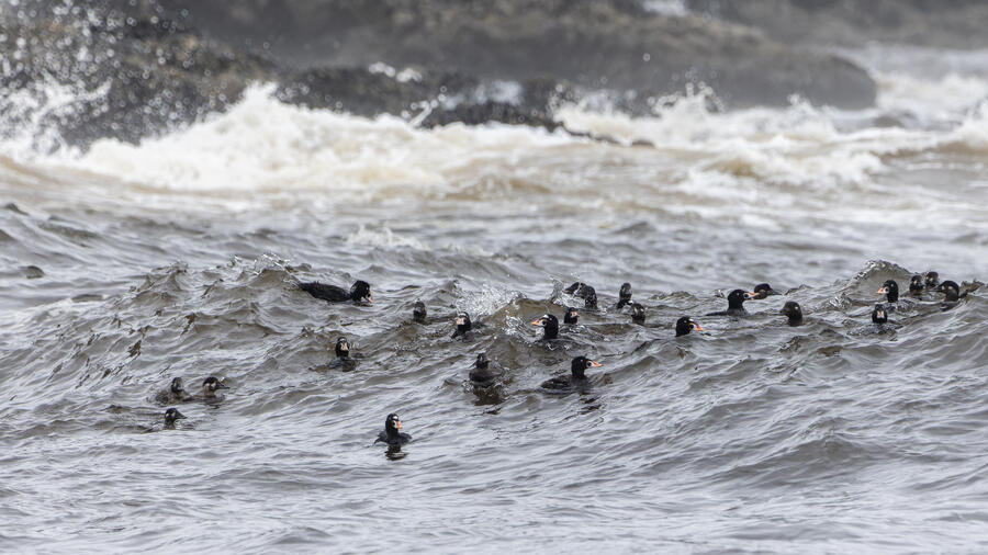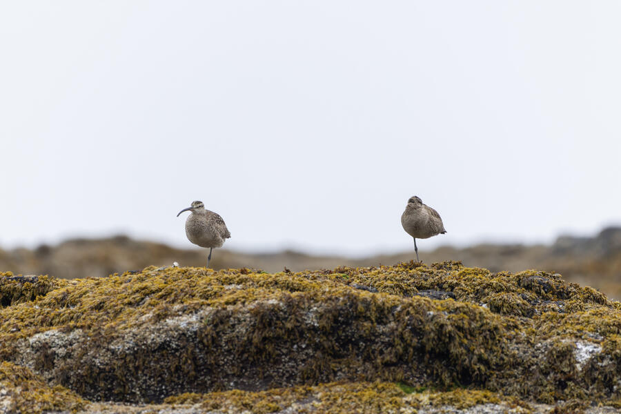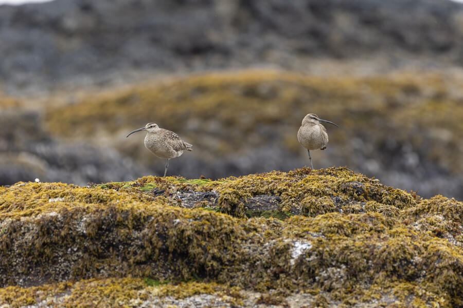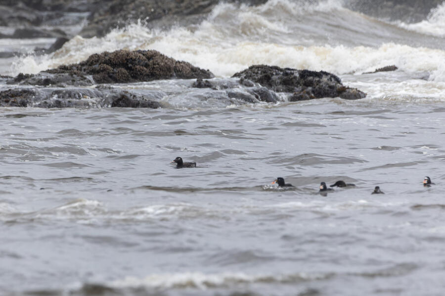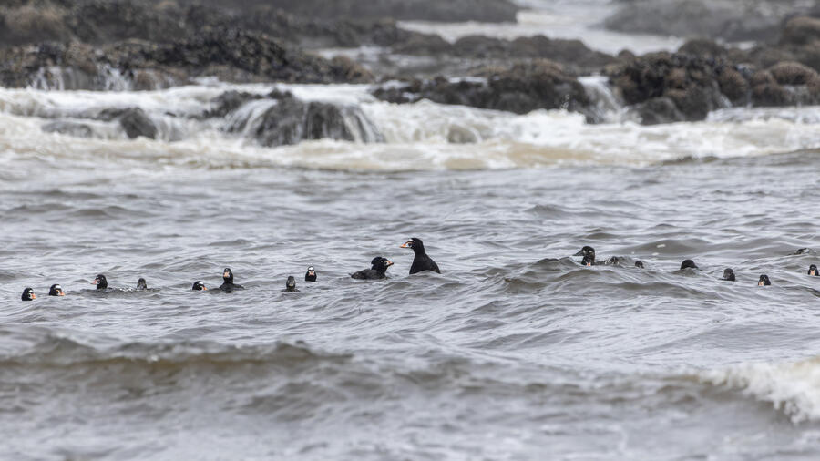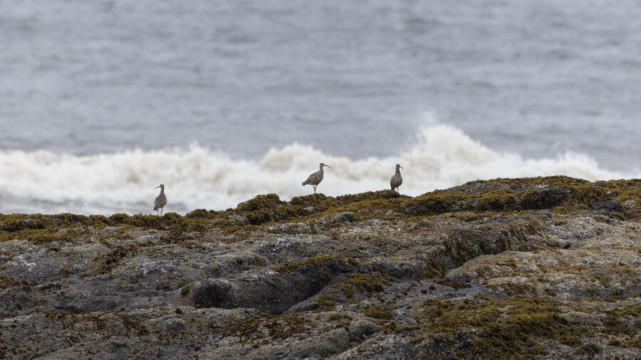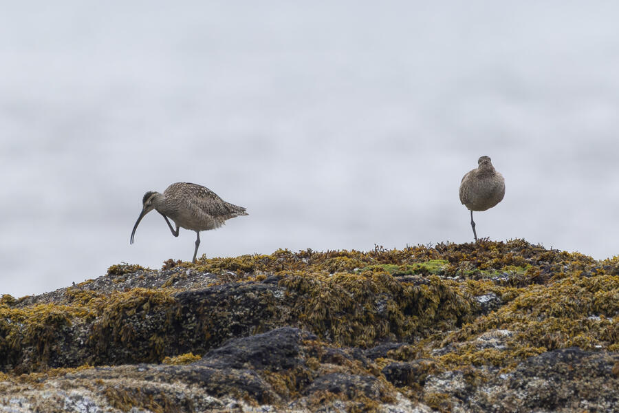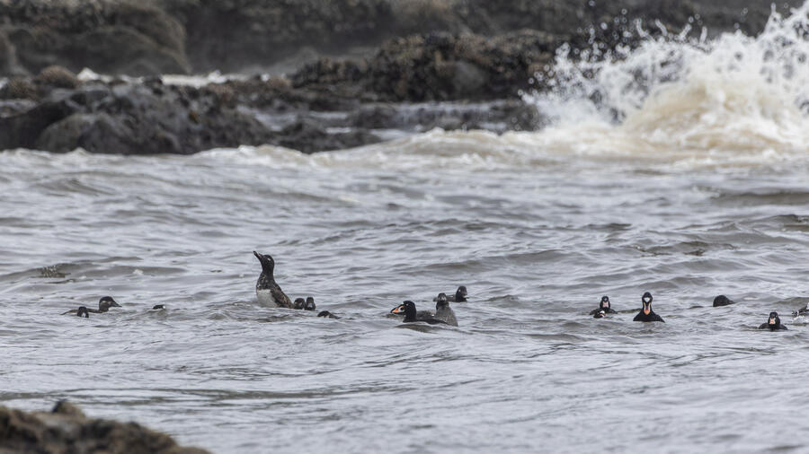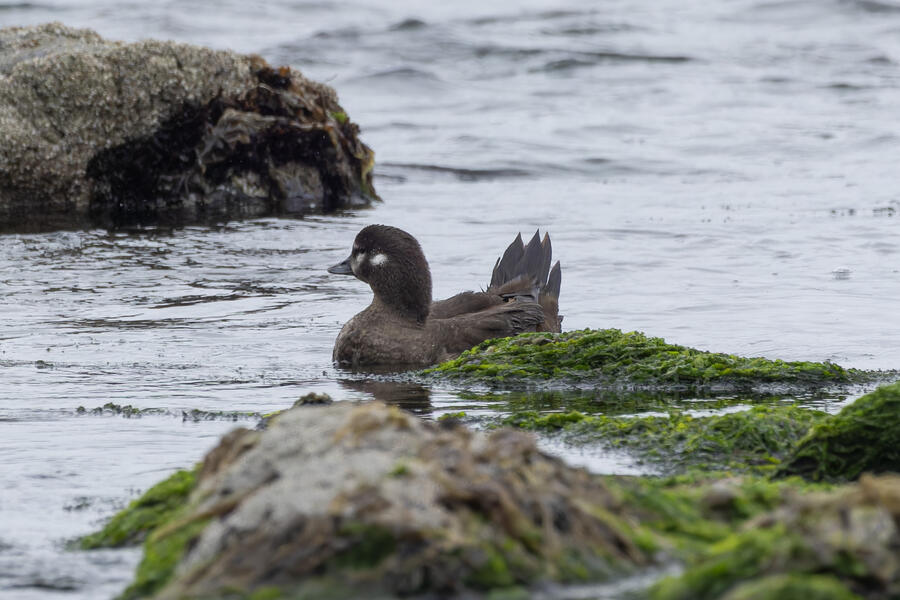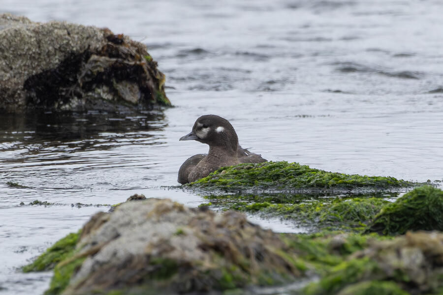 I then drove to a nearby spot on the coast and saw my first-ever stationary Whimbrels. All the other ones I've seen had been flying by, so it was a treat to watch them for a while. I also watched some Scoters diving among the waves, and I got some pictures of the scene I'm pretty happy with. I noticed what appeared to be two females on the rocks, so I snapped some shots of them. They turned out to be female Harlequin Ducks, a new county bird! Pretty cool to finally get them in the county.