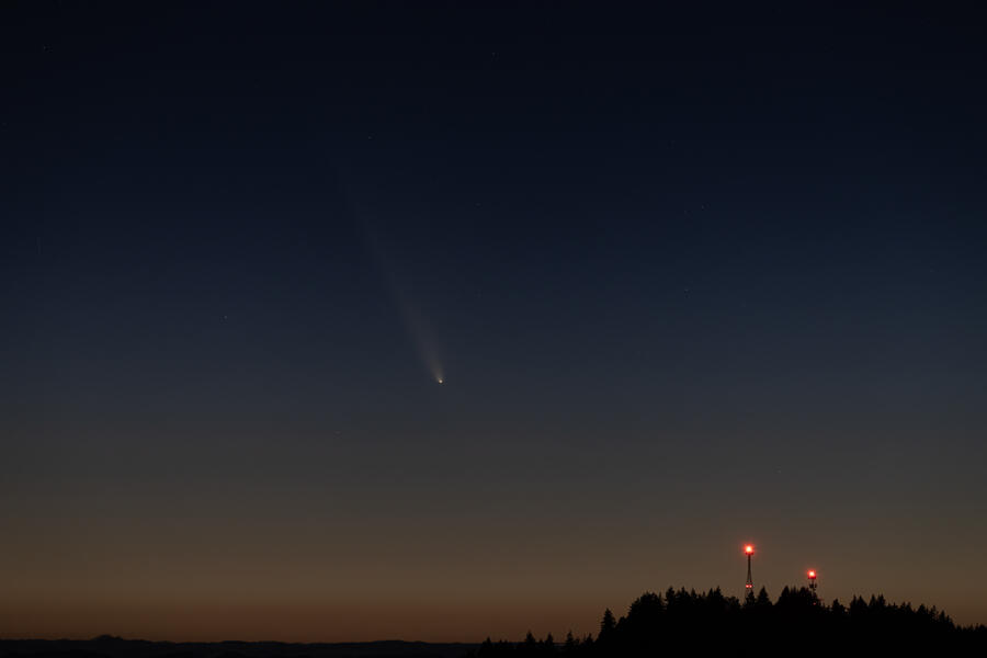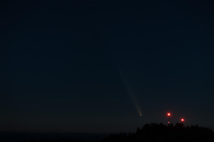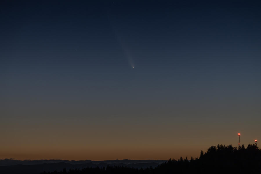 I was lucky to have clear skies on October 12th for viewing comet C/2023 A3 (Tsuchinshan–ATLAS). A ridge on the edge of town offers clear views to the west, and shortly after I arrived a few other folks showed up to see the comet. We had to wait quite a while to get a good view, around an hour after sunset! The comet wasn't terribly bright but it could still be found by eye. By the time the sky was starting to darken the comet was setting and was pretty dim. Most of the photos here are single exposures of a few seconds each.