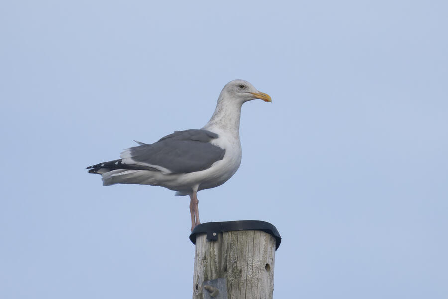 Possibly a Western x Glaucous-winged Hybrid. American Herring can be ruled out because the back is too dark and the bill is too bulbous. The eye also doesn't seem bright enough for a Herring.