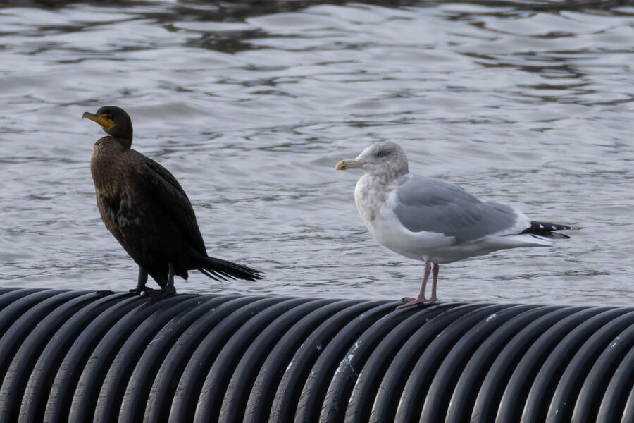 I was not expecting an American Herring Gull to be so large compared to a Cormorant!