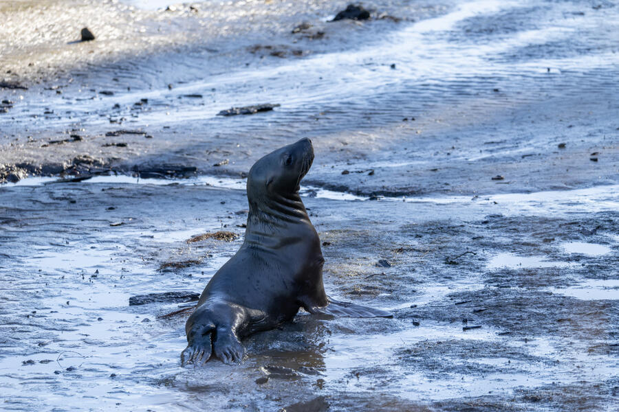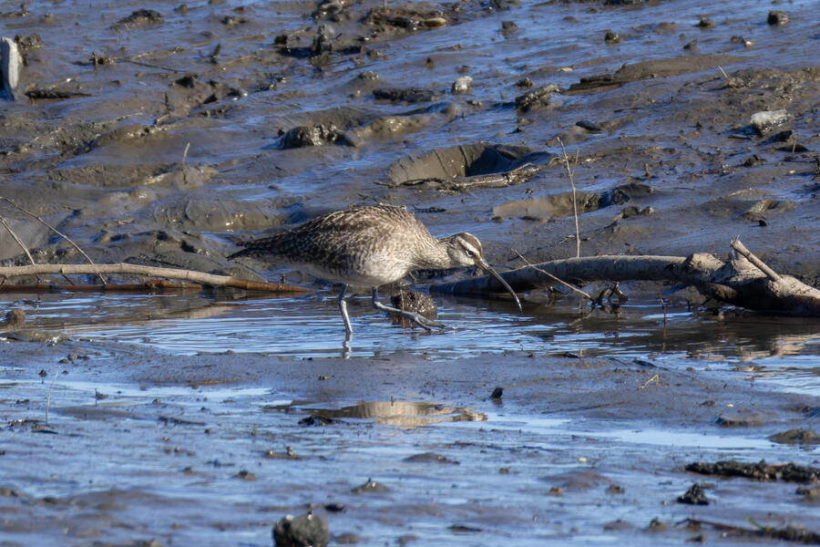 I believe this is a Steller Sea Lion. It was wandering around the mudflats kind of near the Whimbrel, traveling quite a ways over pretty dry land. It came quite close to me but I didn't decide to unpack my camera from my bag in time to get a better shot. Oh well!