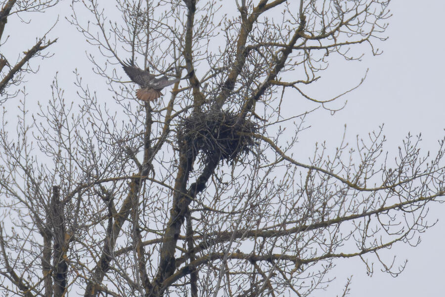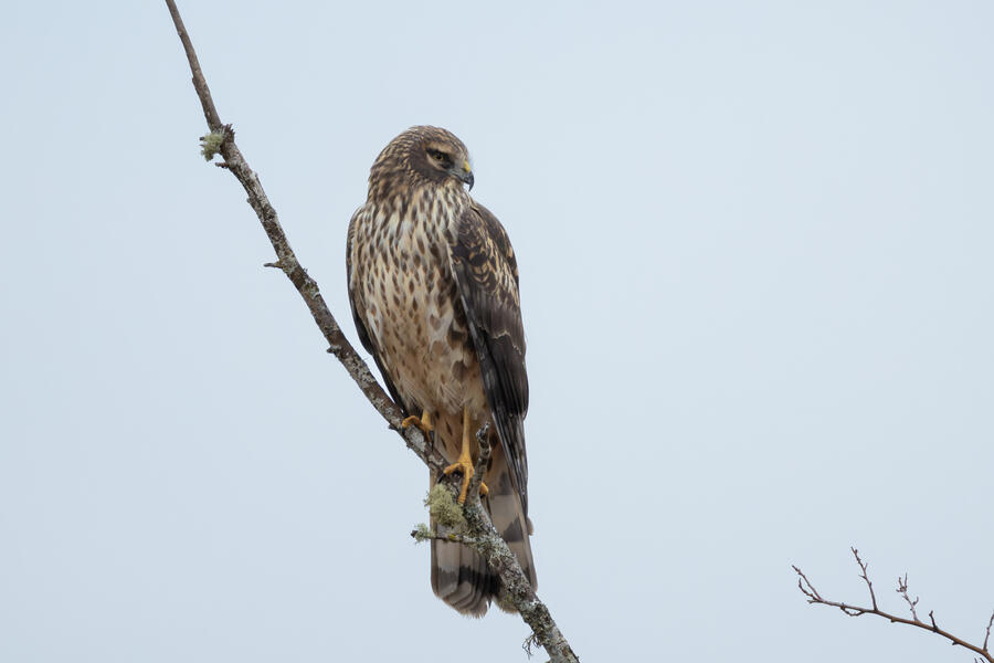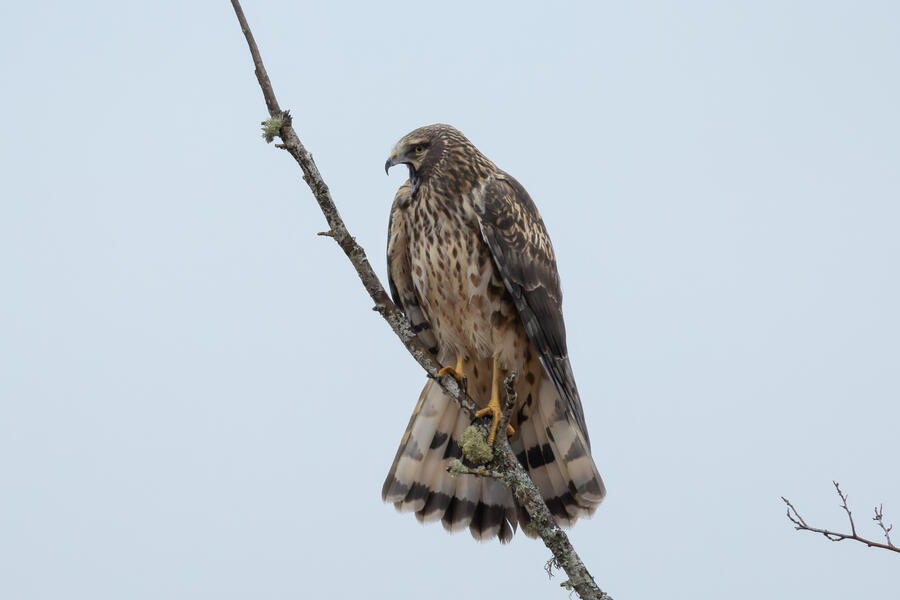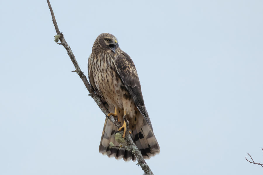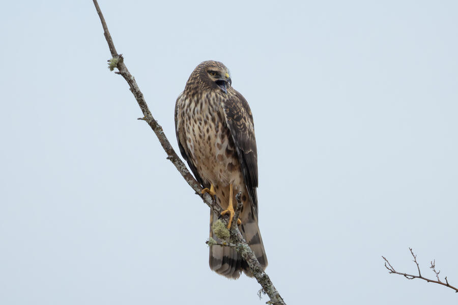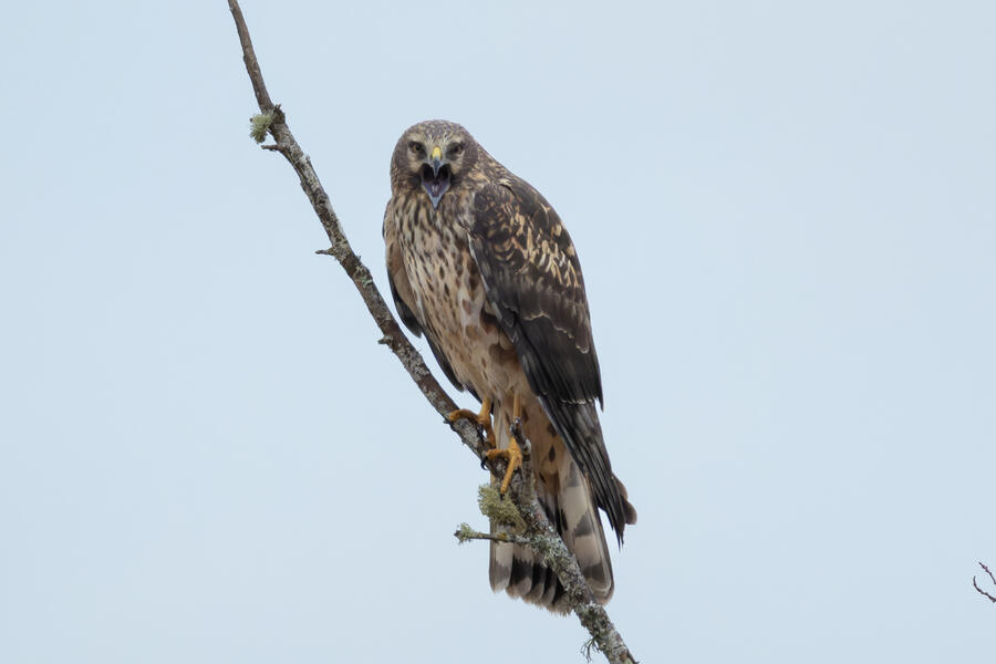 The Canvasback was a tricky duck to pick out from among a couple hundred ducks, mostly because the Ruddy Duck has a similar bill profile from a distance, and because she kept diving down out of sight. On the walk out to the ponds I took a bunch of photos of a talkative perching Northern Harrier.