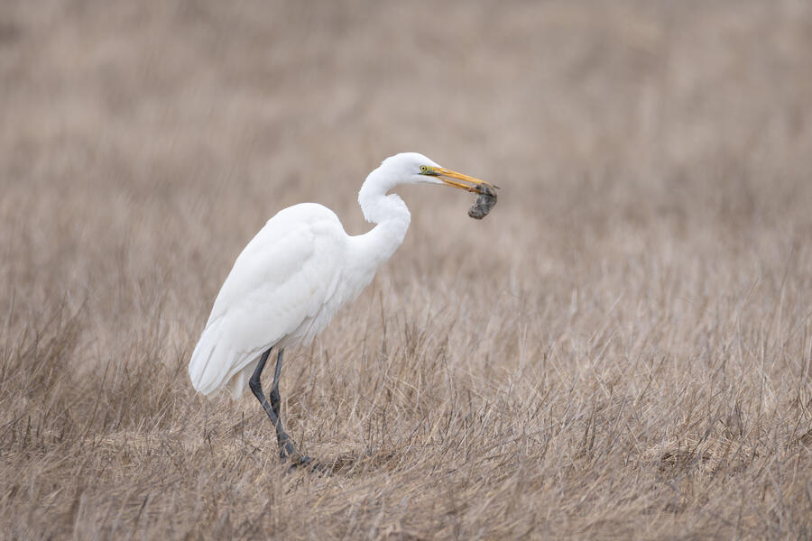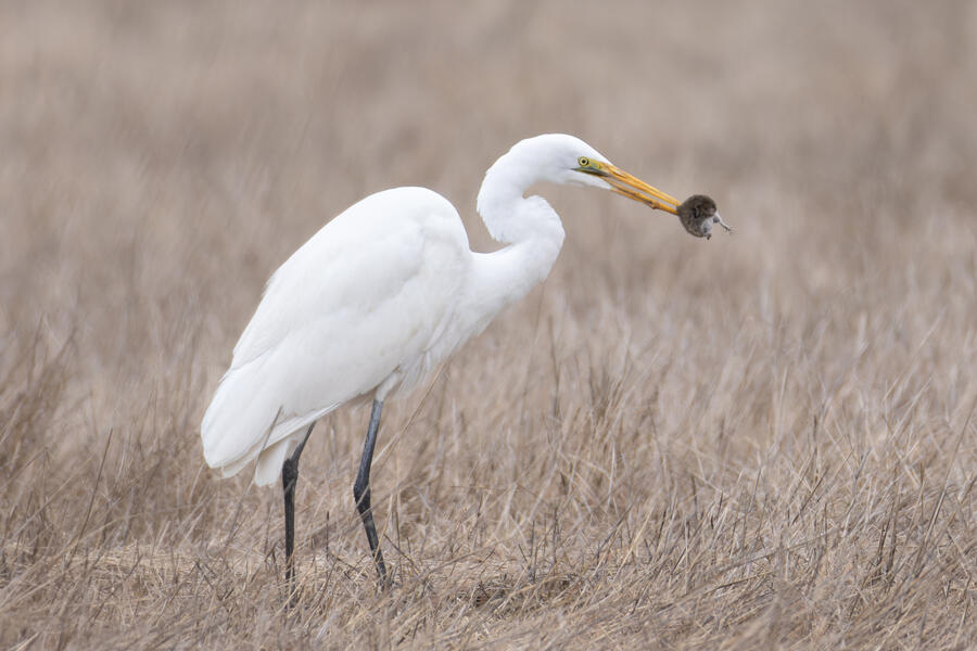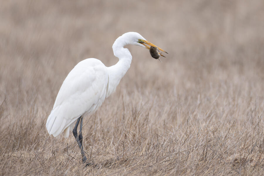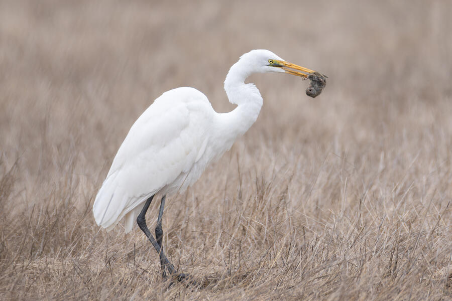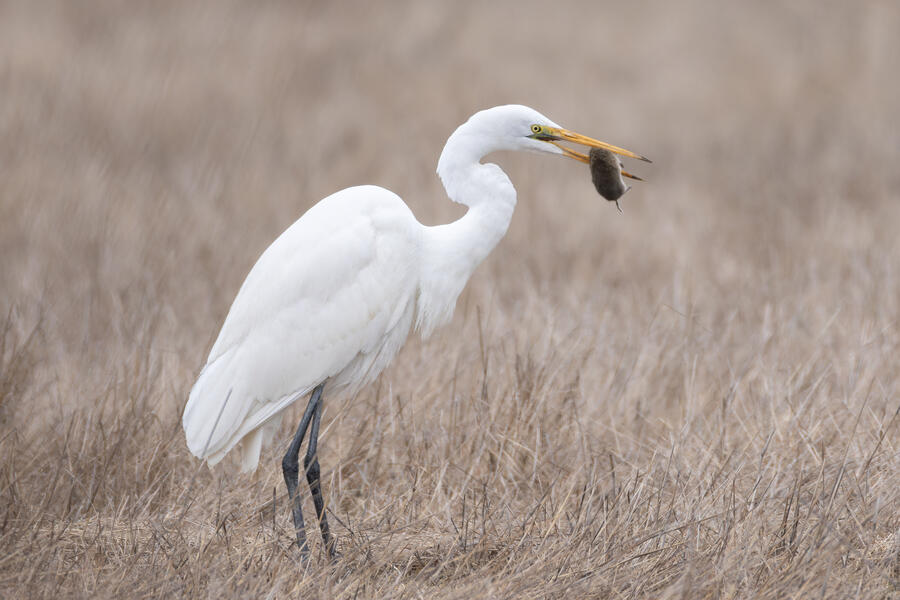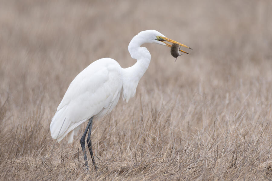 I also went out looking for Rough-legged Hawk a couple times. I came away with some shots of a Great Egret nabbing a rodent, possibly a pocket gopher, and also the Barn Owls. The Barn Owls were more easily viewed with binoculars. I don't expect to get better photos of one of those anytime soon.