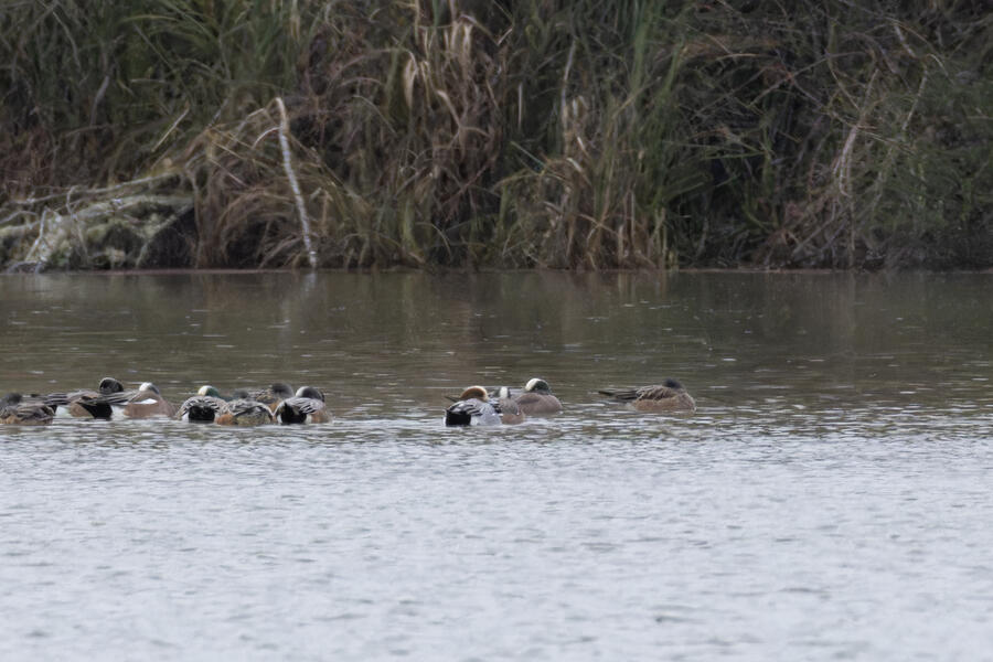 Eurasian Wigeon, American WigeonThis male Eurasian Wigeon was so far away that it was challenging to find him in the viewfinder. When editing the this photo I noticed it looks like there were two of them!