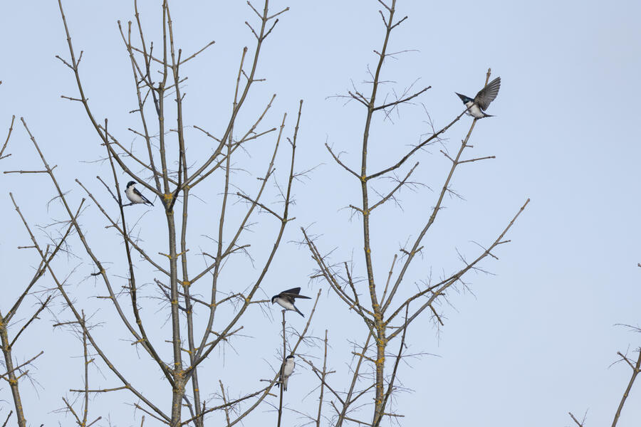 Tree Swallow, Violet-green SwallowI was taking some photos of Tree Swallows and noticed the Merlin app ID'd a Violet-green Swallow by sound. I hadn't seen one so I didn't add it to my eBird checklist, but then I saw a Violet-green when editing this photo. The swallows are already back... spring must be about here!