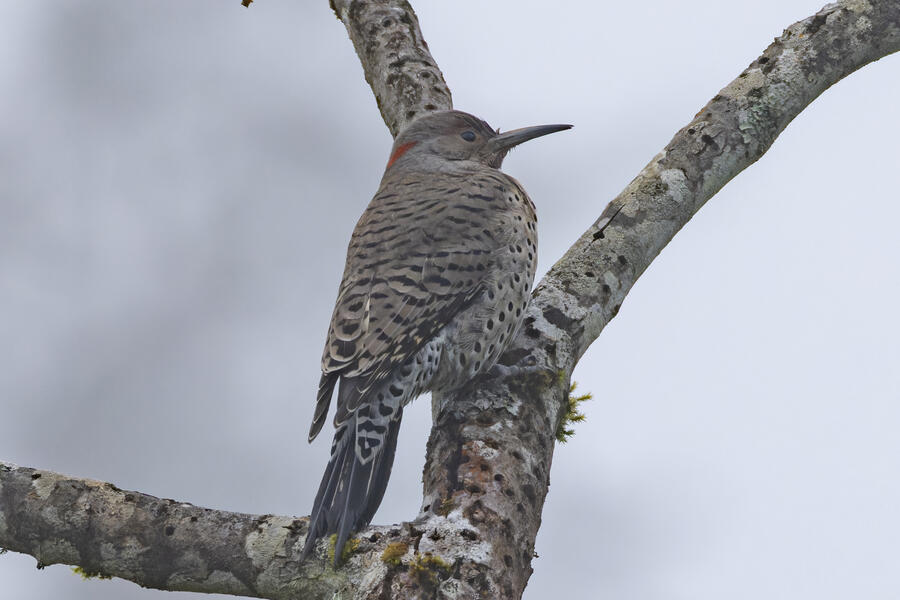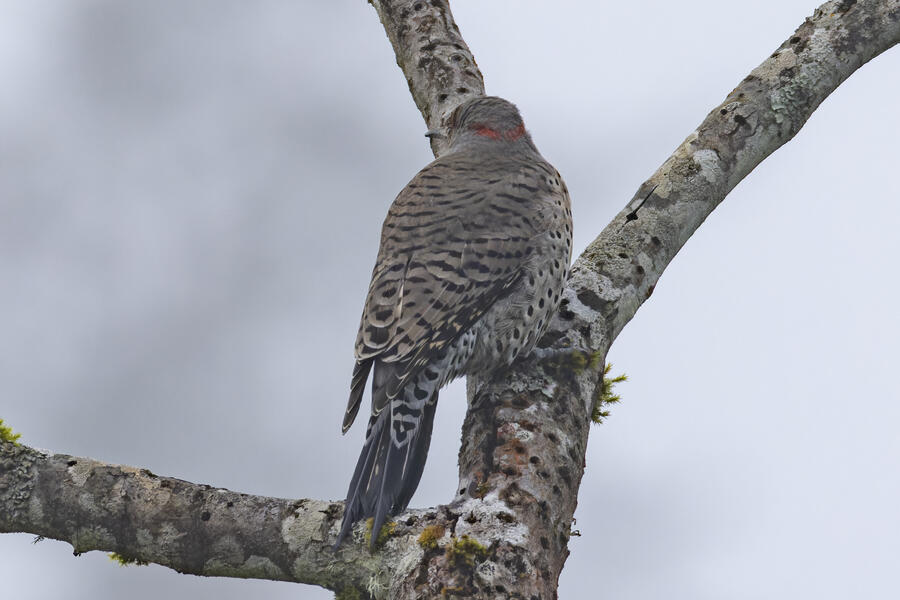 Northern Flicker (Yellow-shafted x Red-shafted)I thought this was a female Yellow-shafted Northern Flicker at first, but the red nape patch is a bit fuzzy. That, combined with the rarity of Yellow-shafted here, makes it seem more likely to be a Yellow/Red hybrid.