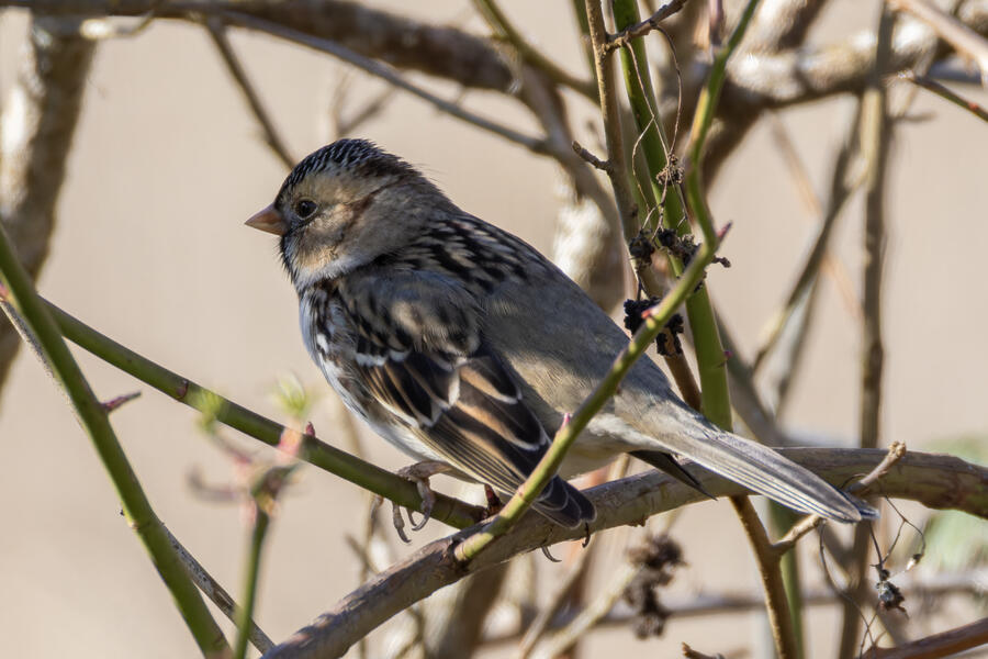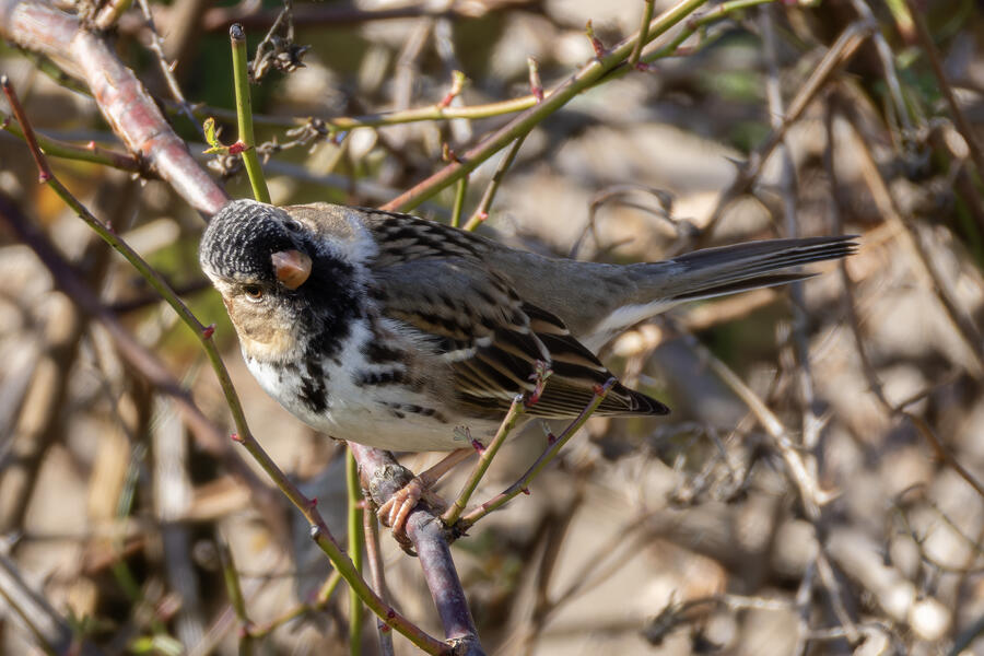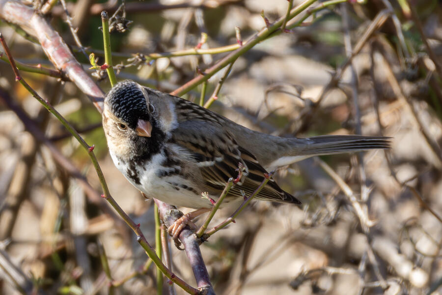 Harris's SparrowThis is a rare sparrow here, first found by a young local birder. I was able to briefly see it on my second visit here.