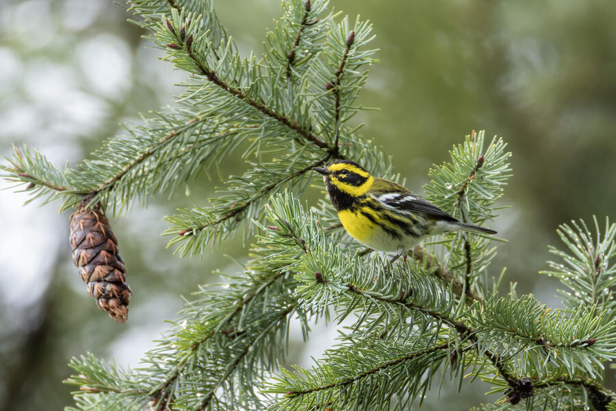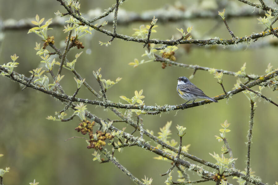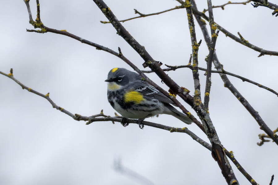 Yellow-rumped Warbler (Myrtle)This appears to be a male Myrtle Yellow-rumped Warbler, but doesn't have the expected distinct white eyebrow. It may have some Audobon's Yellow-rumped Warbler genes.