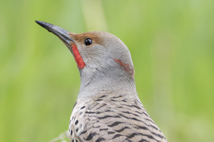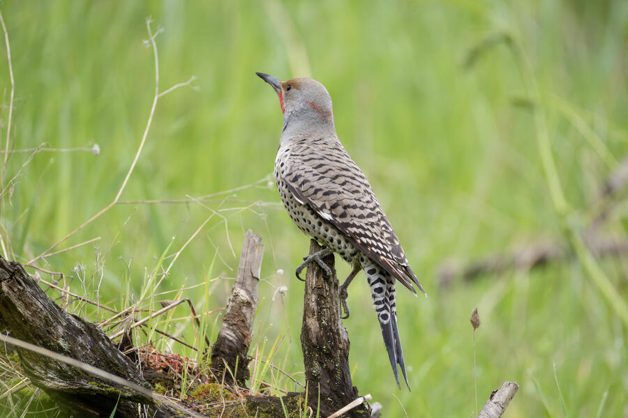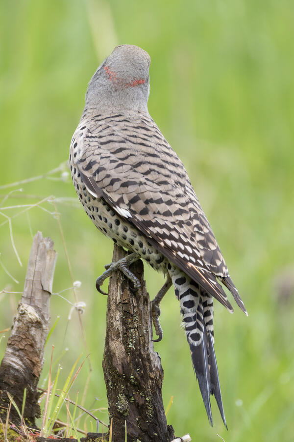 Northern Flicker (Yellow-shafted x Red-shafted)This male hybrid flicker held a nice pose for me for a minute and gave nice profile shots and well as a clear shot of his semi-red nape area.