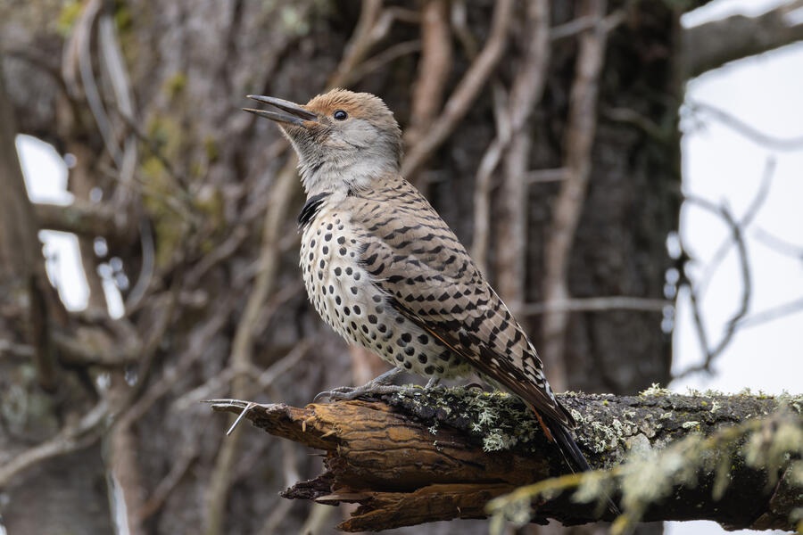 Northern Flicker (Red-shafted)I saw a pair of flickers and what I presumed was a tree with a nest cavity. This female was calling/singing from a branch near the nest hole.