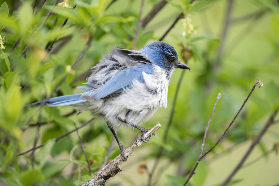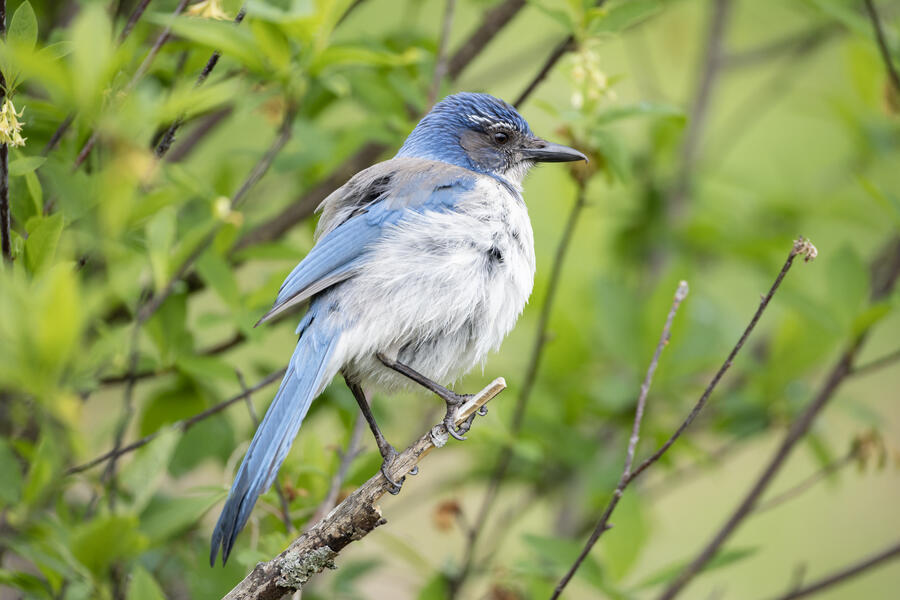 California Scrub-JayI used Lightroom Classic's generative remove feature to paint over a bit of grass stuck to the far side of the bird's bill.