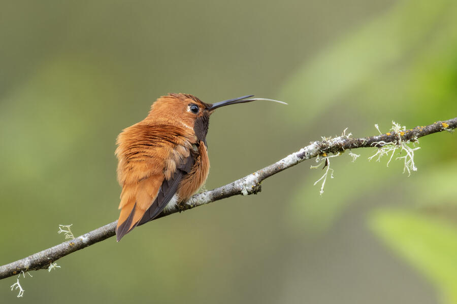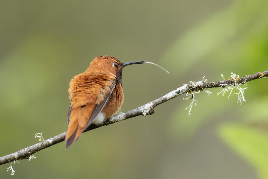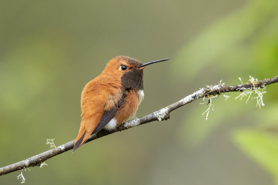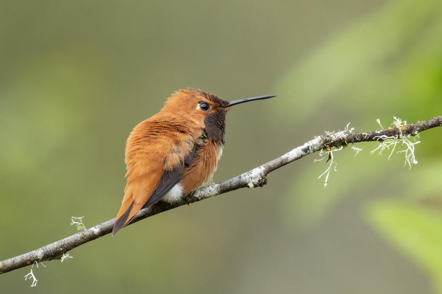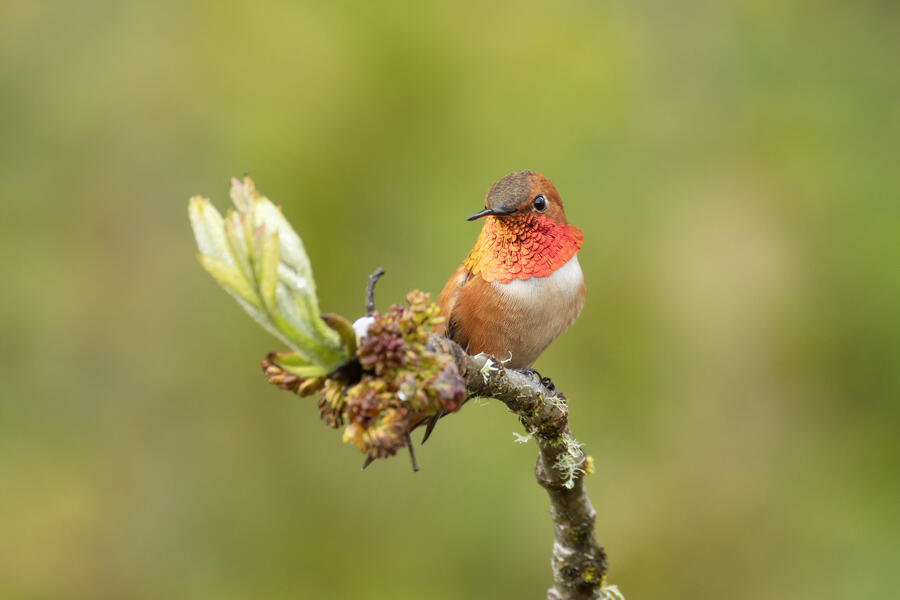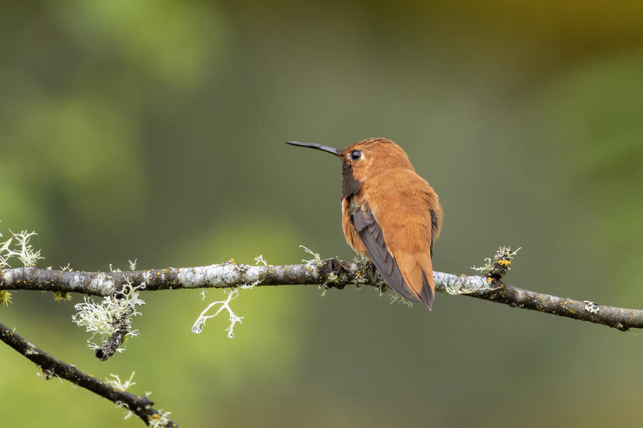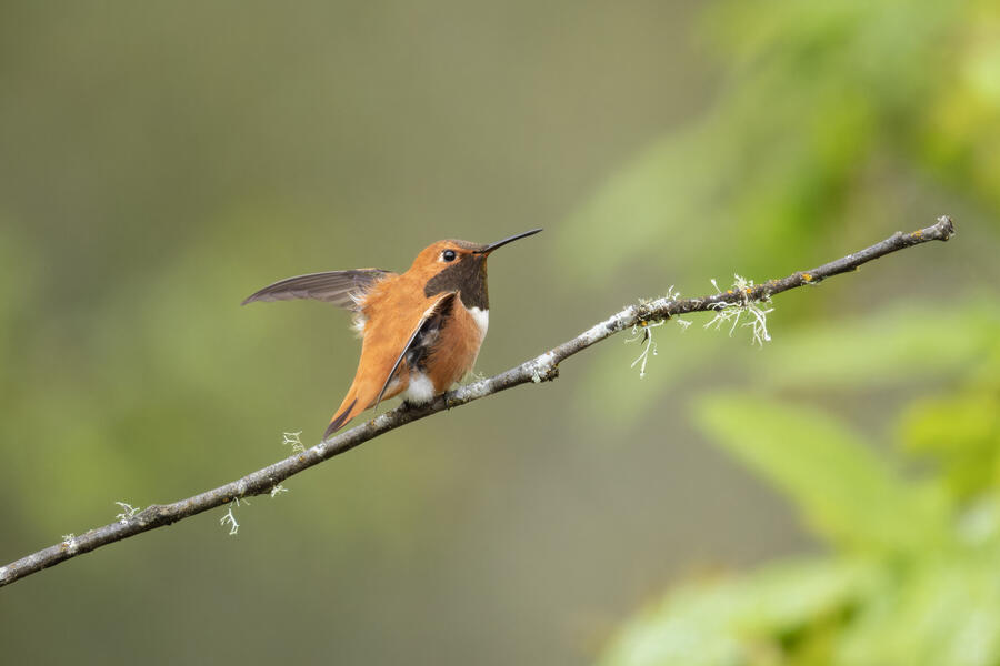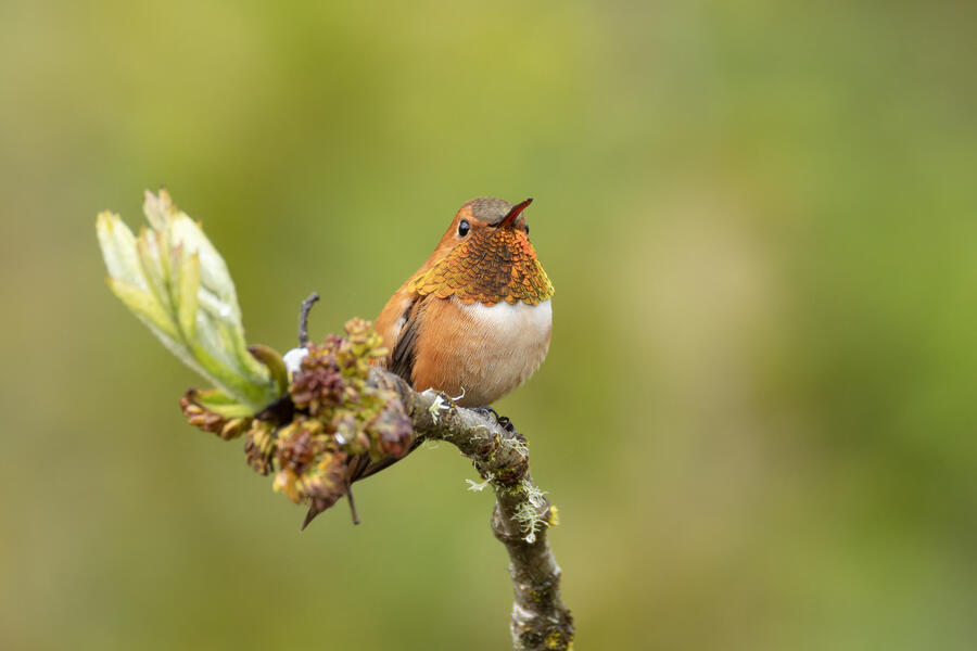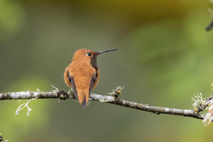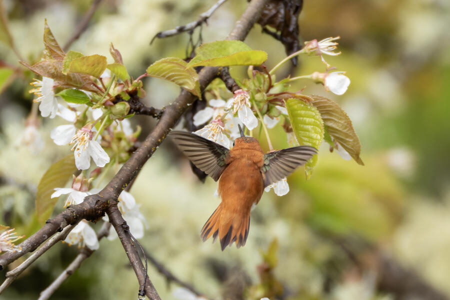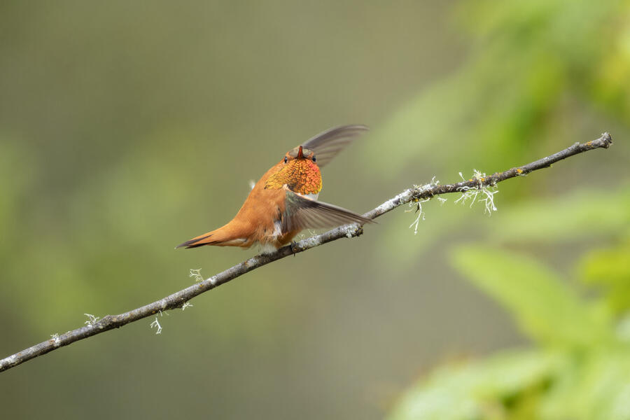 Rufous HummingbirdThis shot shows the pair of tail feathers with "notched" ends, which is the only way to tell a Rufous from an Allen's. All the male orange hummingbirds here are assumed to be Rufous, but I wonder how often Allen's Hummingbirds go unnoticed in this part of Oregon.