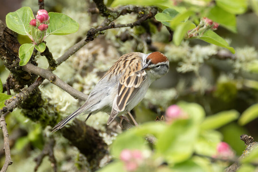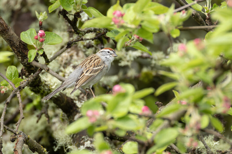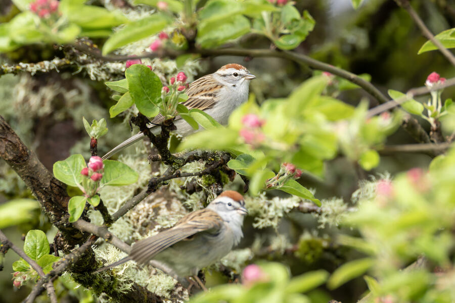 Chipping SparrowI heard a couple of Chipping Sparrows earlier in my walk, but wasn't able to spot them. I was really happy to unexpectedly see this pair just appear in a tree right in front of me!