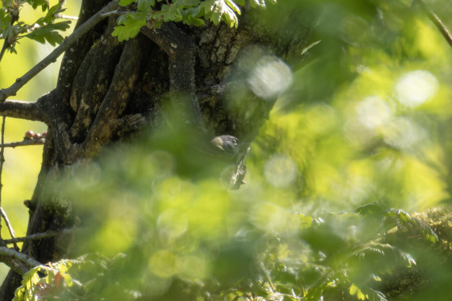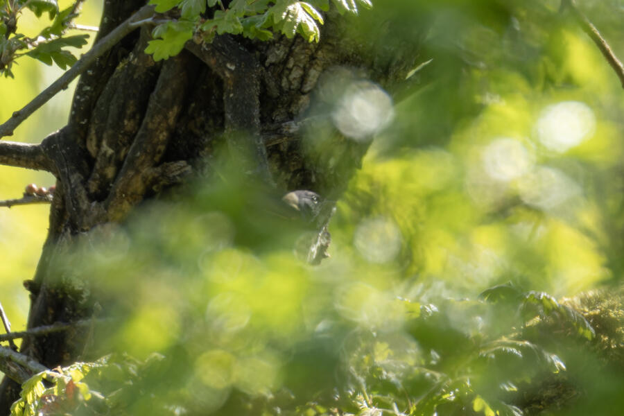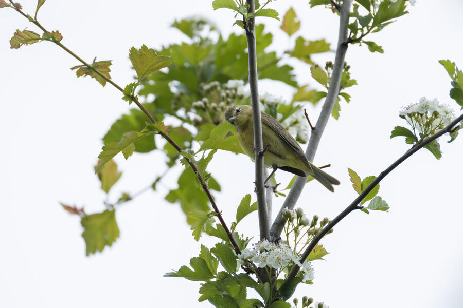 MacGillivray's WarblerI breifly got my first glimpse of a MacGillivray's Warbler through binoculars before it flitted out of sight. I took a few photos of the area and was surprised to find it (though barely visible) in the photos.