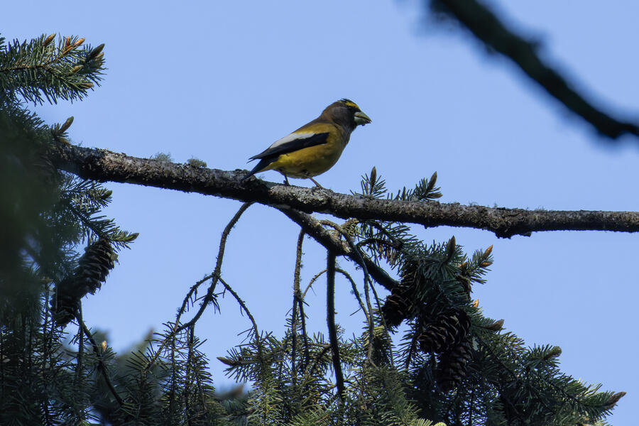 Evening Grosbeak, Double-crested CormorantA good shot of an Evening Grosbeak still eludes me, but on this occasion some visited our yard and a couple of them were actually visible in the trees overhead for a few seconds at a time.