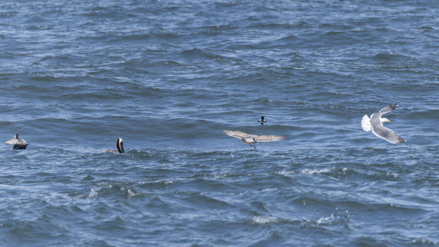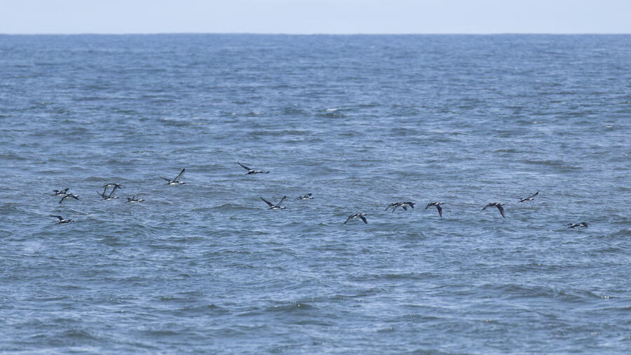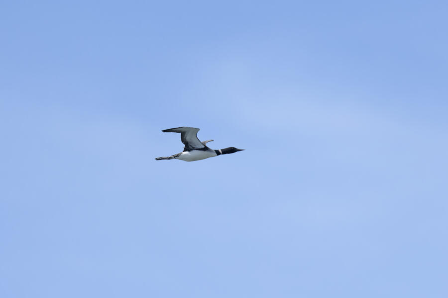 Pacific LoonI don't think I'd seen Pacific Loons in their breeding plumage before. Lots of little groups of 20-30 of them were headed north, flying low over the water. I'm not sure if they migrate during the day, or at such a low altitude, but for what it's worth ChatGPT says they were likely migrating.