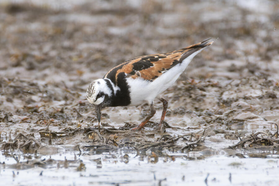 A few days ago, first thing in the morning, I got yard bird #75: Olive-sided Flycatcher. It was far away, but I count any bird I can see or hear from my yard as a yard bird. I was fortunate the bird didn't fly off while I hurried to grab my camera. After looking at the photos, I thought it might have been my first yard-photographed Western Wood-Pewee, but there's enough contrast between the dark and light areas of the "vest" appearance that I'm pretty sure it was an Olive-sided Flycatcher. A little while later that day, I saw an eBird notification of a nearby rare Ruddy Turnstone. These birds are pretty rare here on the coast, where they are normally found, and even more infrequent inland here. I got a chance to go looking for it in the early evening, and again I was luckily able to easily find and photograph the bird. A great and easy lifer! Even while being somewhat careful with the shutter button, I shot over 1,500 frames of the bird! It took a lot of work to go through them all to pick out the best ones. None of the photos came out super sharp, and the background/environment in the photos isn't terribly photogenic, but it was terrific to get a chance to see and photograph this cooperative bird.