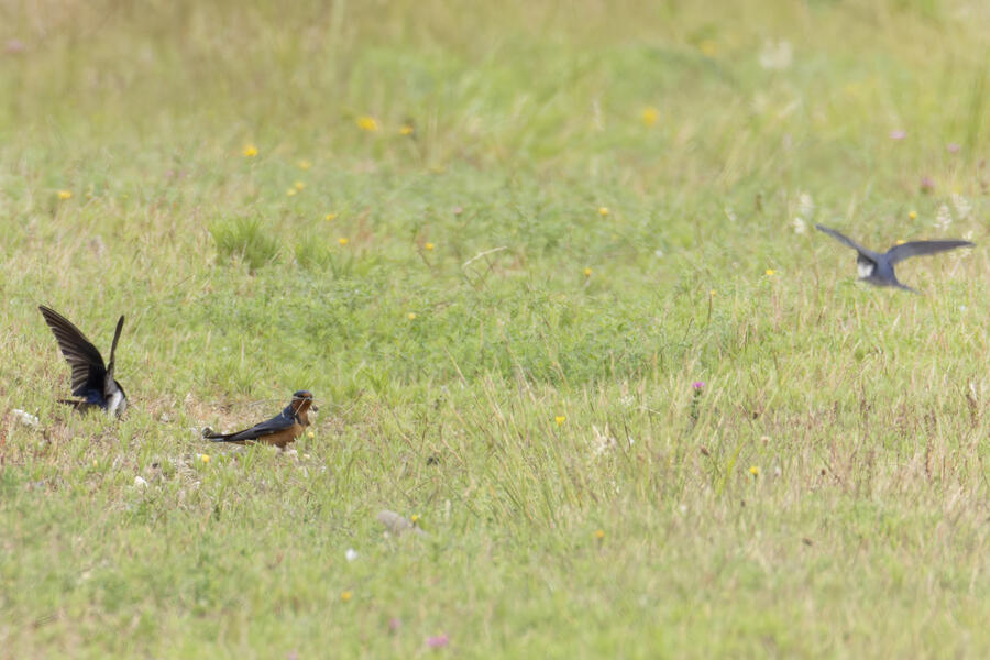 I wouldn't have kept this shot, but the Barn Swallow has a mouthful of grass.