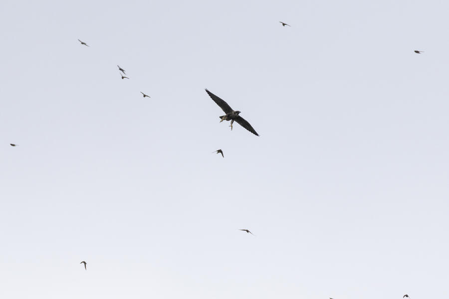 Peregrine Falcon, Barn SwallowI guess this Peregrine was considering going after a swallow in mid-air. That would have been something to see!