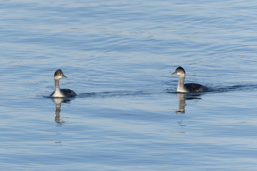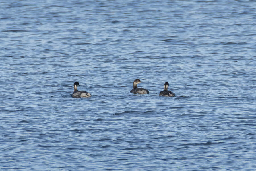 I also had a fun time watching and photographing a small flock of Western Bluebirds, got photos of some Eared Grebes (a new county bird!), and managed to get a phone picture of a Eurasian Collared-Dove from the yard (a new yard bird!).