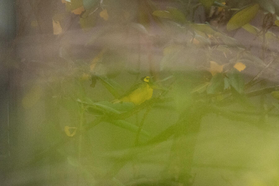 I was able to go and see the Hooded Warbler twice. It was a state-level rarity, and on my first visit some birders there had already found it, which made getting a glimpse easier. I only got a brief look with binoculars, so I returned a few days later and was able to find it on my own and get some challenging photos. This bird was staying close to the ground, and in a residential area with dense vegetation and fenced off properties, so it was hard to actually see after locating it by ear.