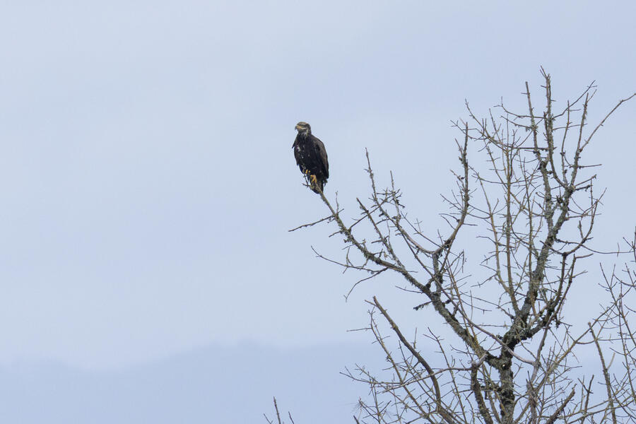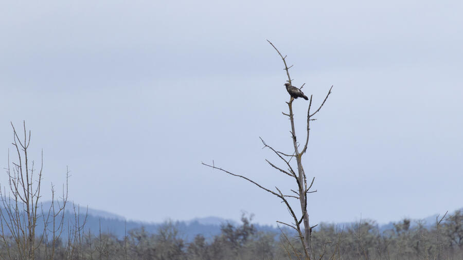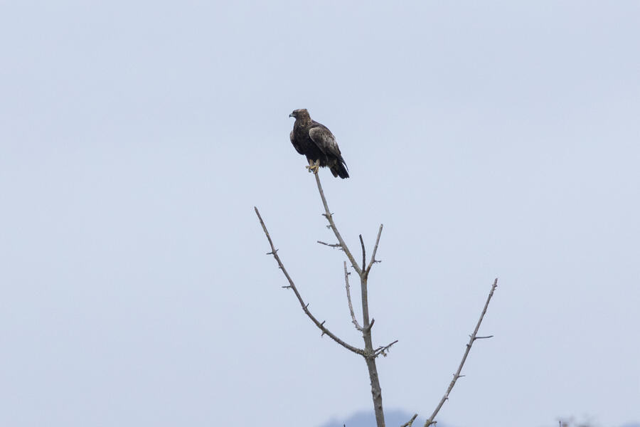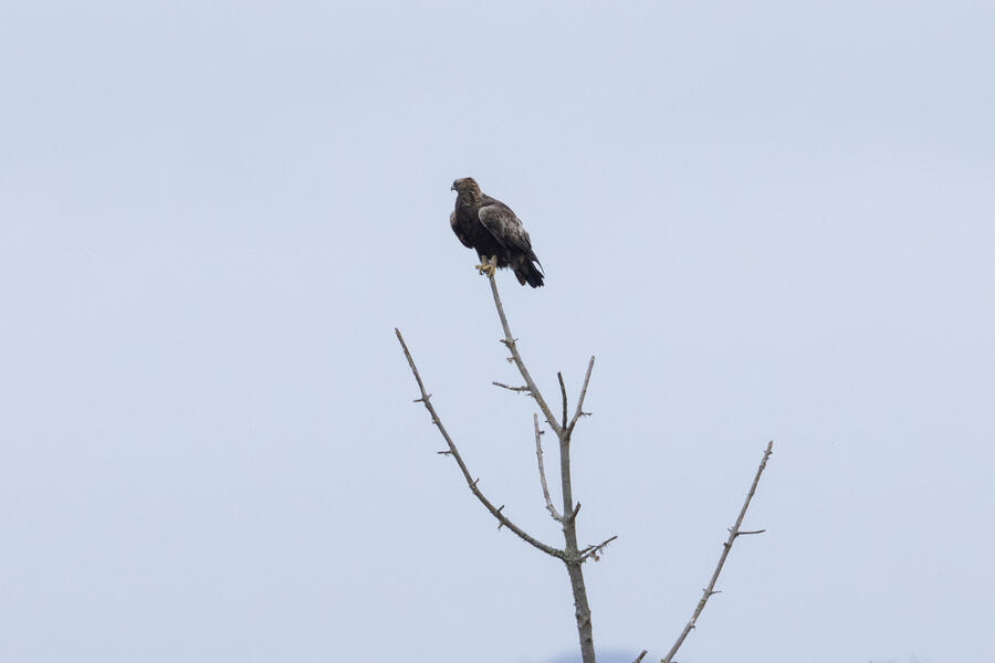 I returned the following morning and found the Golden Eagle perched in the expected location. This time, I got scope and binocular views of it, and plenty of photos. It flew around for a while and eventually settled back down on the perch again. While not a lifer (I'd seen a distant soaring Golden Eagle in November) I really appreciated getting a much longer look at this bird.